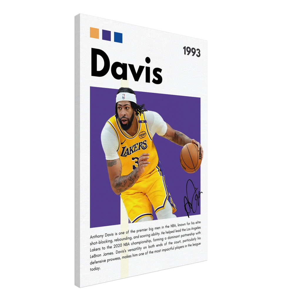 Elevate your space with this vibrant Anthony Davis wall art, capturing the dynamism of "The Brow" in his iconic gold and purple Los Angeles Lakers jersey. This striking canvas, featuring a facsimile signature, celebrates one of the NBA's most dominant big men, bringing championship energy and legendary presence to any room. It's the perfect statement piece for Lakers faithful and basketball enthusiasts alike.