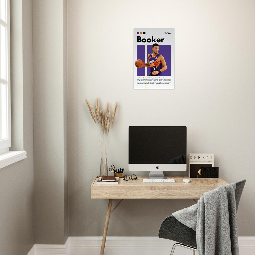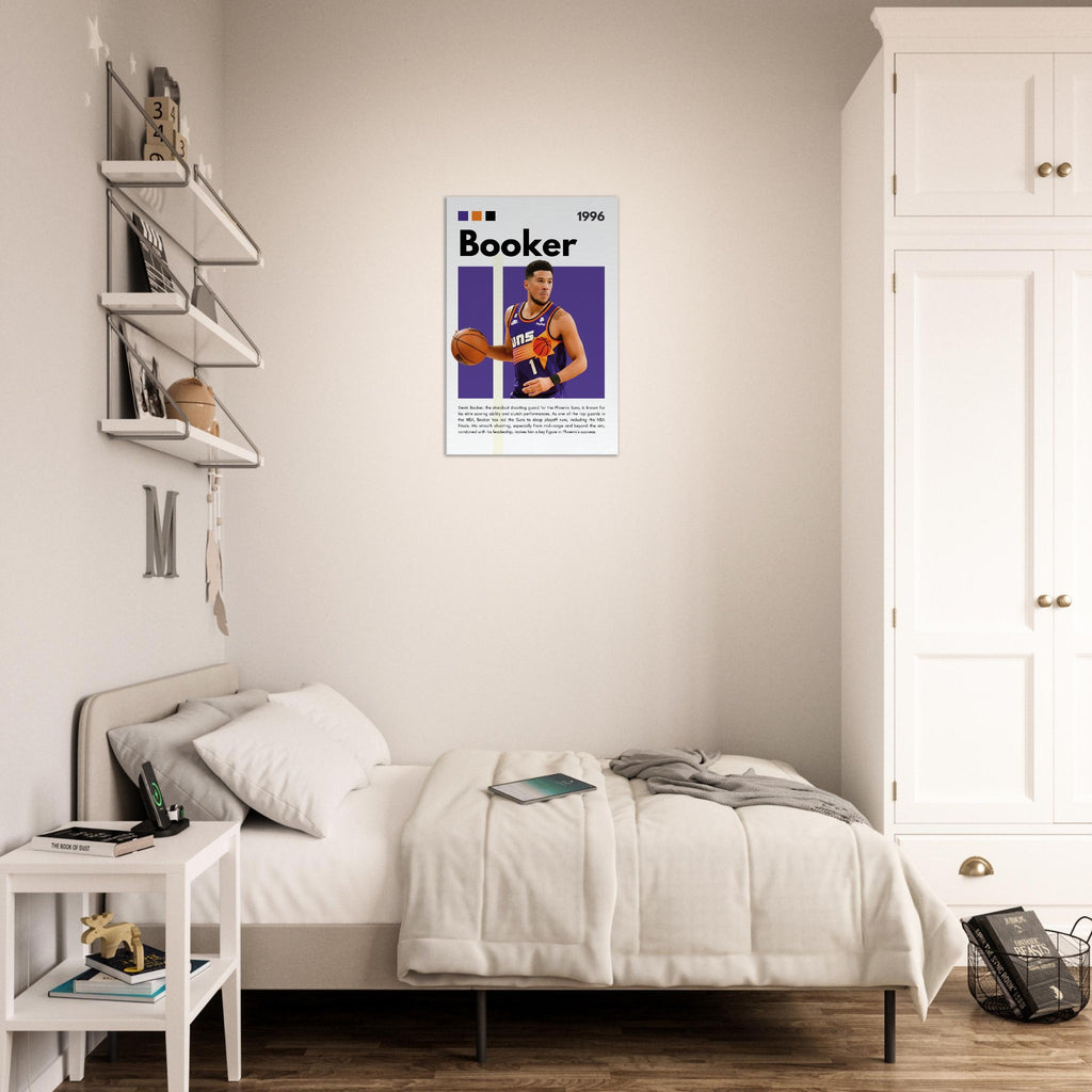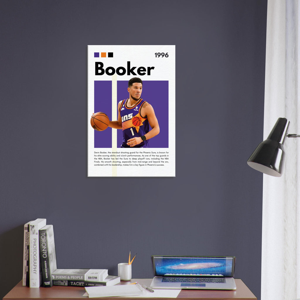 Capture the essence of NBA greatness with this dynamic Devin Booker wall art, featuring the Phoenix Suns star in his iconic jersey. Designed with the team's vibrant purple and orange, this premium canvas print brings the energy of the court directly into your home, office, or fan space. It’s the perfect tribute for any dedicated basketball enthusiast or art lover looking to celebrate one of the game's most exciting players.