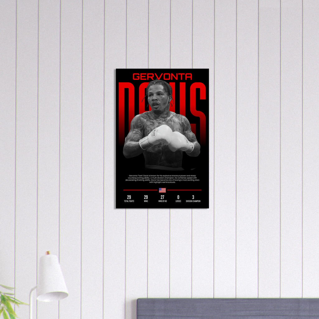 Unleash the power of the ring with this electrifying Gervonta "Tank" Davis wall art. Capturing the boxing champion in a striking black and white portrait, accented with bold red typography, this piece celebrates his explosive knockout power and championship legacy. It’s the ultimate statement for any fan of "Tank" Davis or boxing enthusiasts looking to add a dynamic, high-energy focal point to their space.