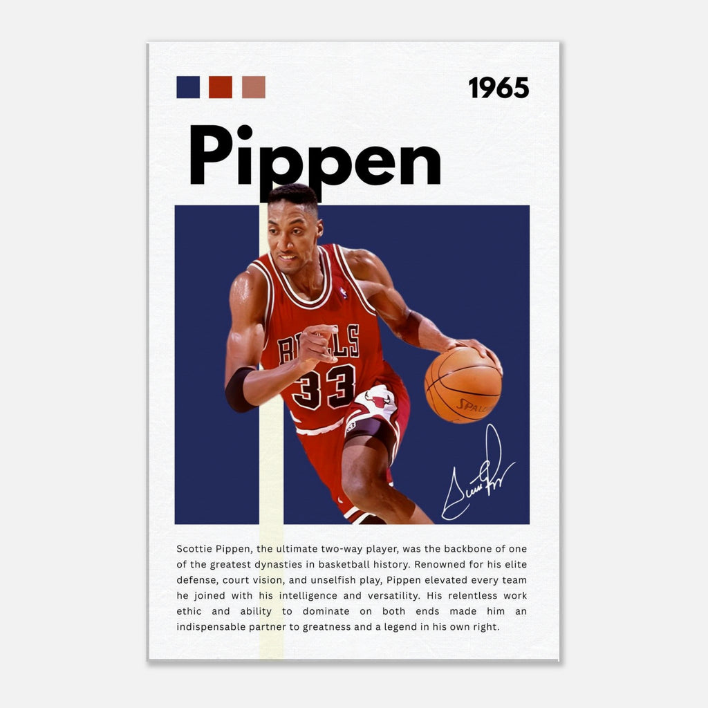 ✅ Scottie Pippen Tribute – Featuring Pippen in his Chicago Bulls kit with number 33 and a facsimile signature print