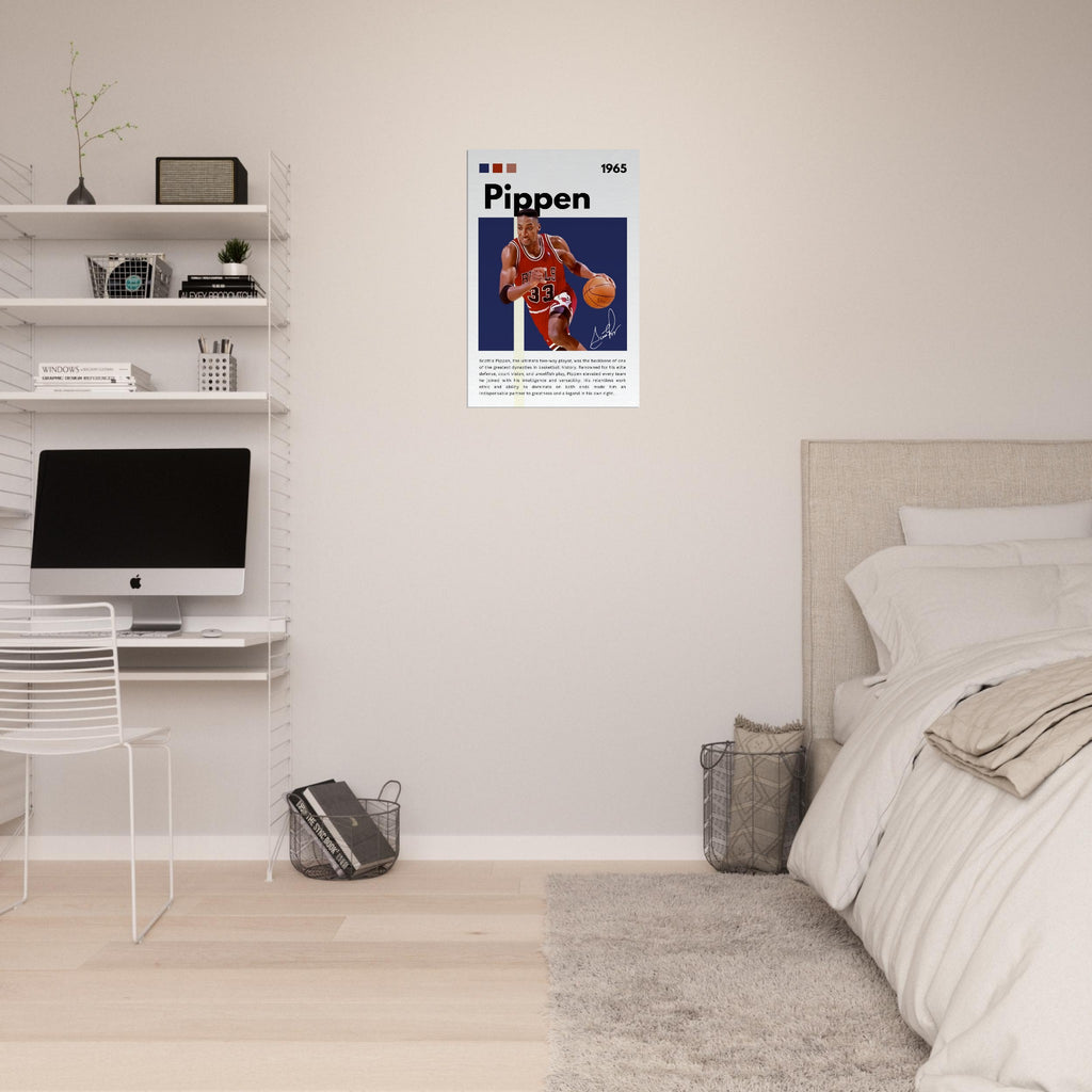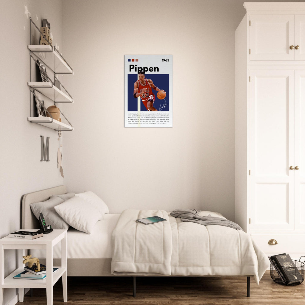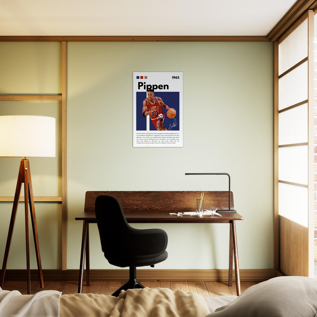 Immortalize a basketball legend with this striking Scottie Pippen wall art, showcasing him in his iconic Chicago Bulls number 33 jersey. With bold colors and dynamic energy, this tribute canvas perfectly captures Pippen's intensity and skill, making it an essential piece for any true basketball enthusiast or Bulls fan looking to add a touch of greatness to their space.