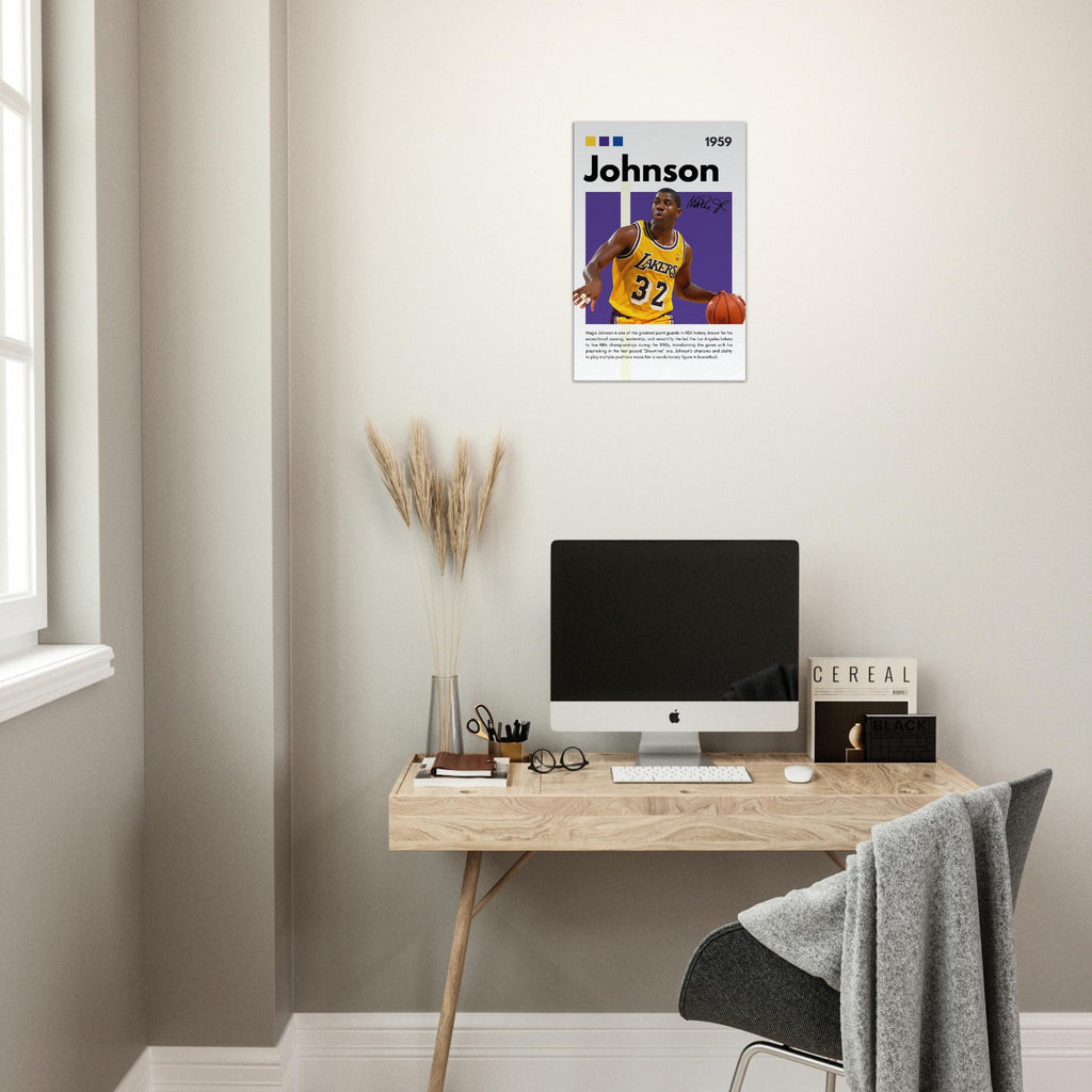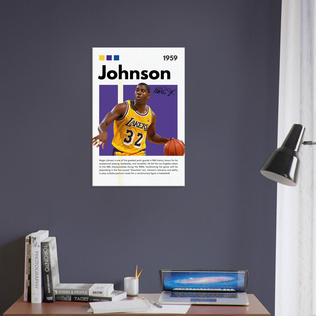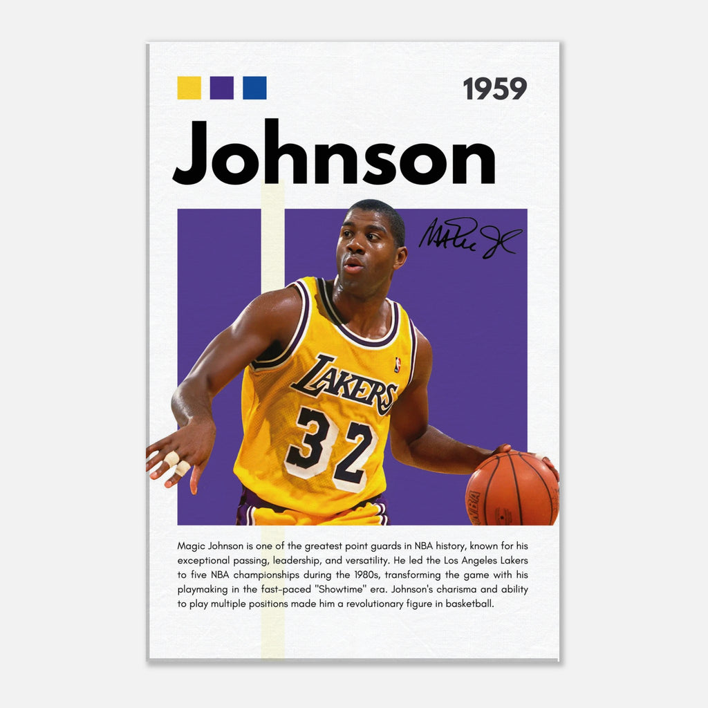 ✅ Magic Johnson Tribute – Featuring Magic in his Los Angeles Lakers uniform with number 32 and facsimile signature print