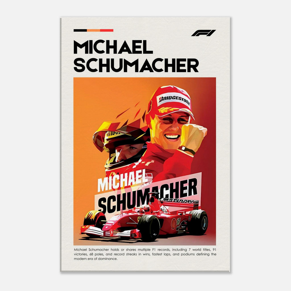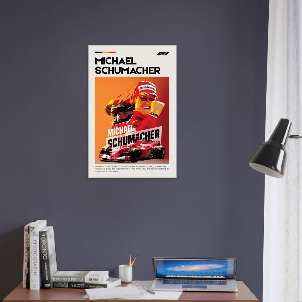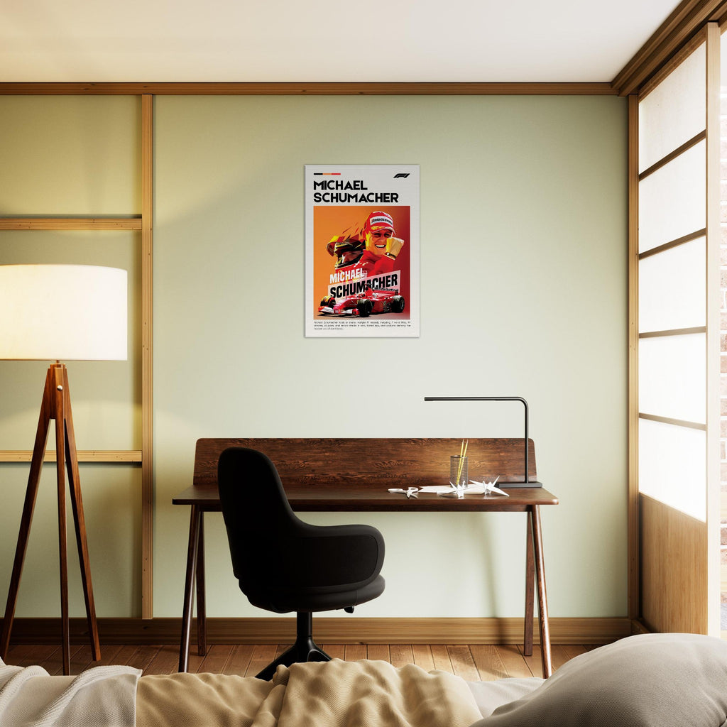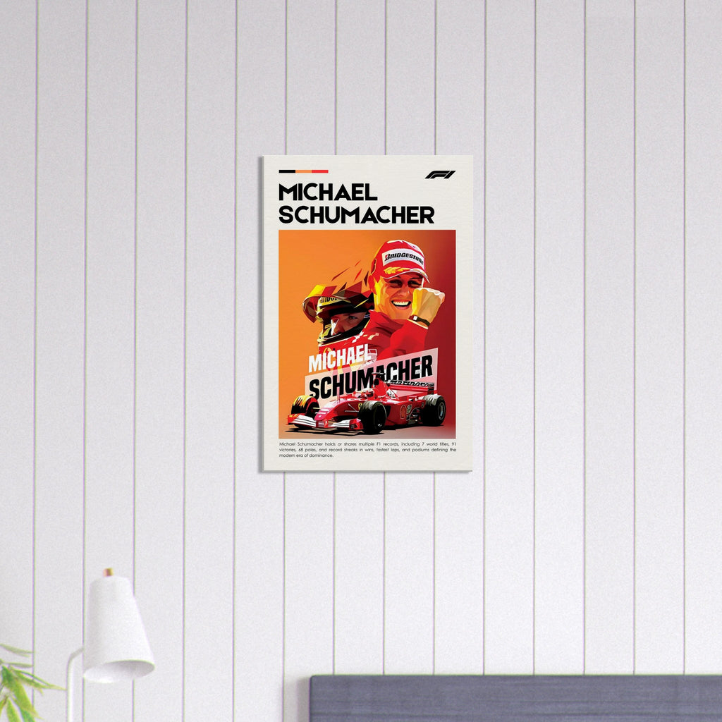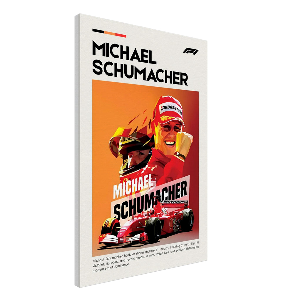 Celebrate the legacy of Michael Schumacher with our stunning canvas print that captures the spirit and energy of this iconic figure in motorsport. Our canvas artwork combines enhanced texture with timeless beauty, making it a perfect addition to any racing enthusiast's collection.