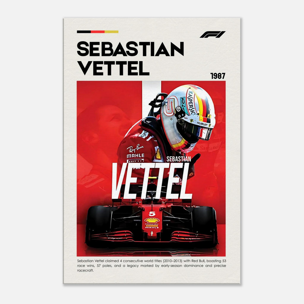 Celebrate the legacy of Sebastian Vettel with our stunning canvas print that captures the spirit and energy of this iconic figure in motorsport. Our canvas artwork combines enhanced texture with timeless beauty, making it a perfect addition to any racing enthusiast's collection.