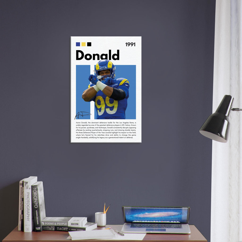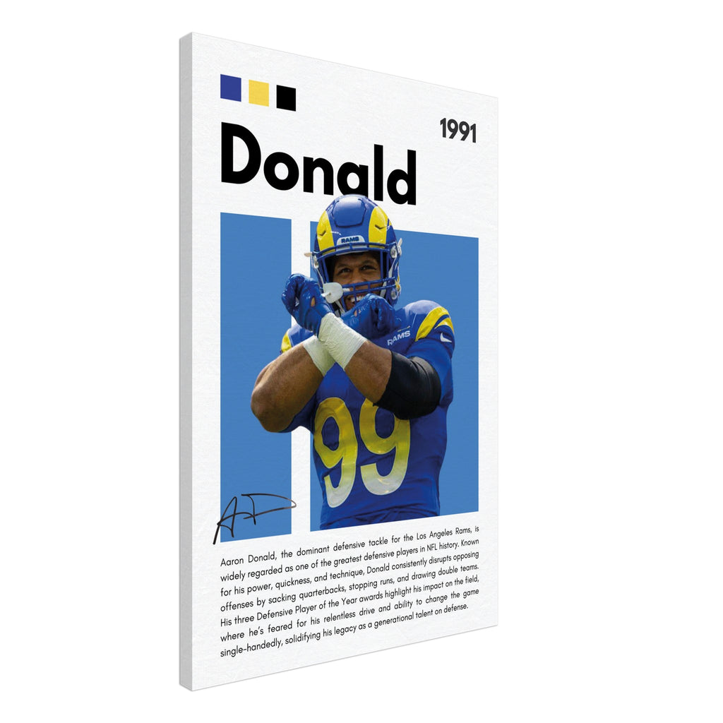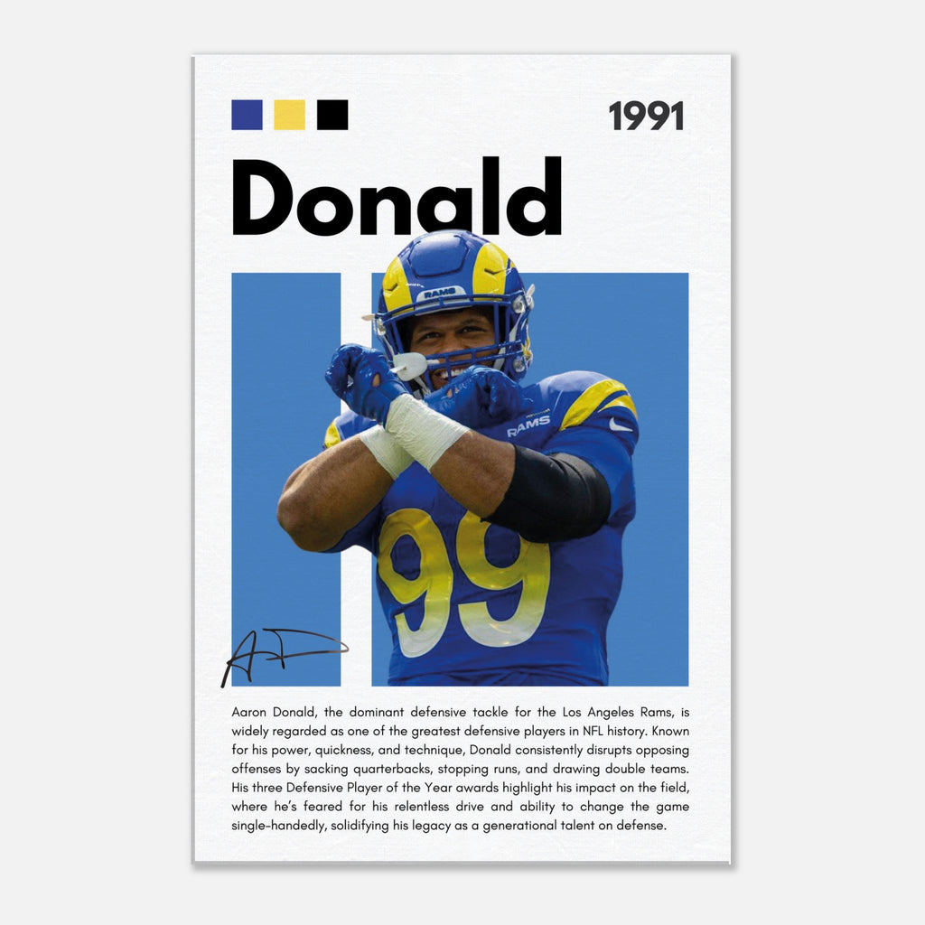 Celebrate one of football’s greatest icons with this stunning Aaron Donald wall art, featuring him in his Los Angeles Rams kit with his iconic number 99. Designed with bold blue and yellow colors and dynamic detail, this tribute canvas adds energy and inspiration to any room — the perfect centerpiece for true Aaron Donald fans and sports lovers alike.