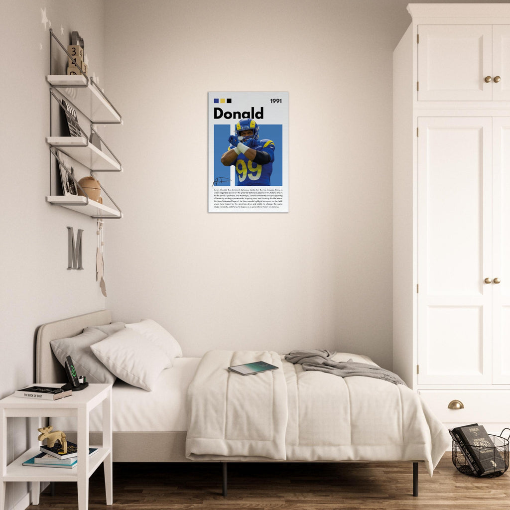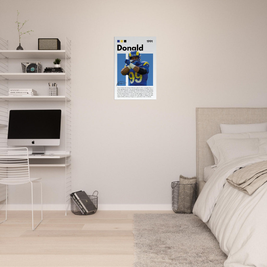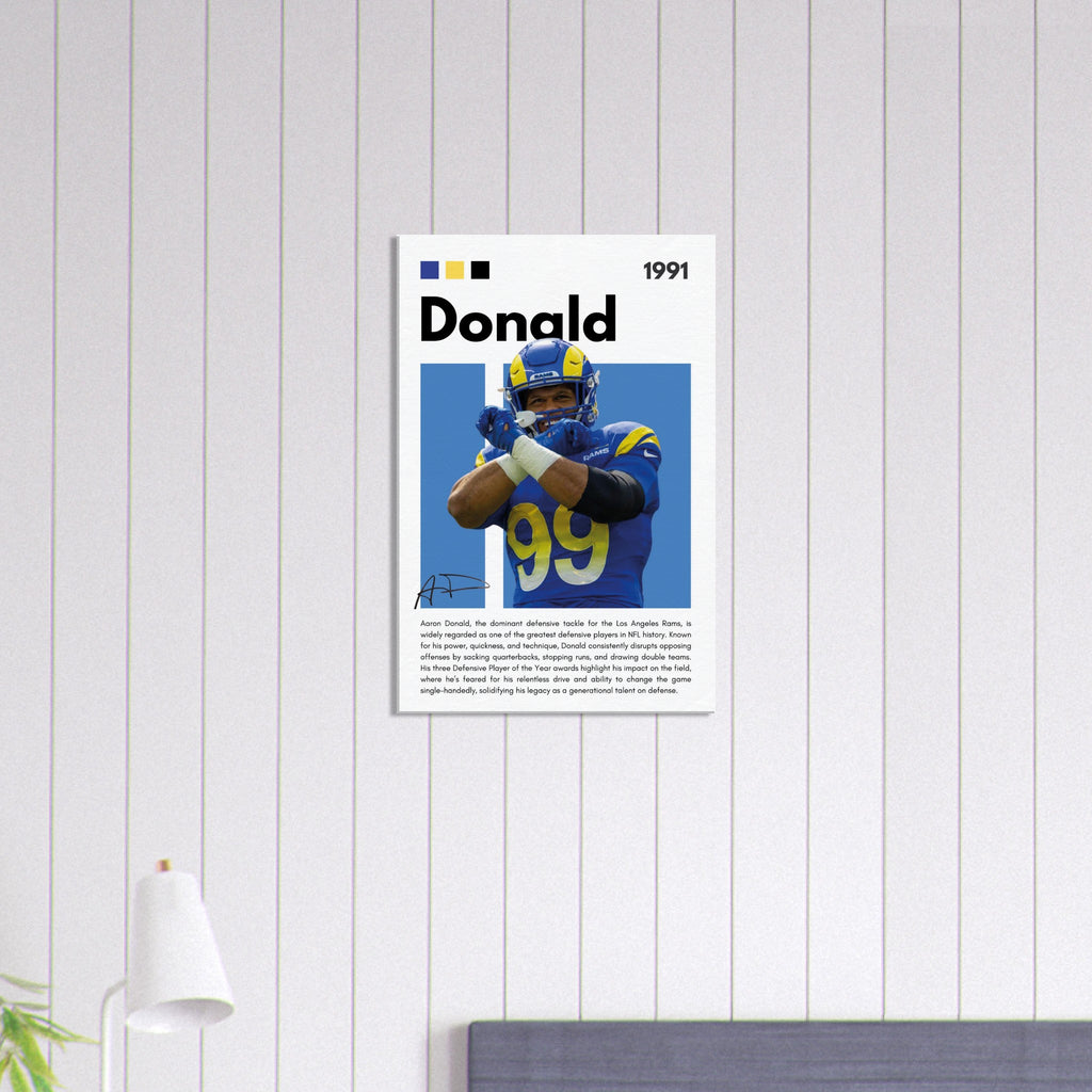 Celebrate one of football’s greatest icons with this stunning Aaron Donald wall art, featuring him in his Los Angeles Rams kit with his iconic number 99. Designed with bold blue and yellow colors and dynamic detail, this tribute canvas adds energy and inspiration to any room — the perfect centerpiece for true Aaron Donald fans and sports lovers alike.