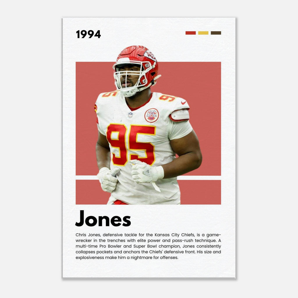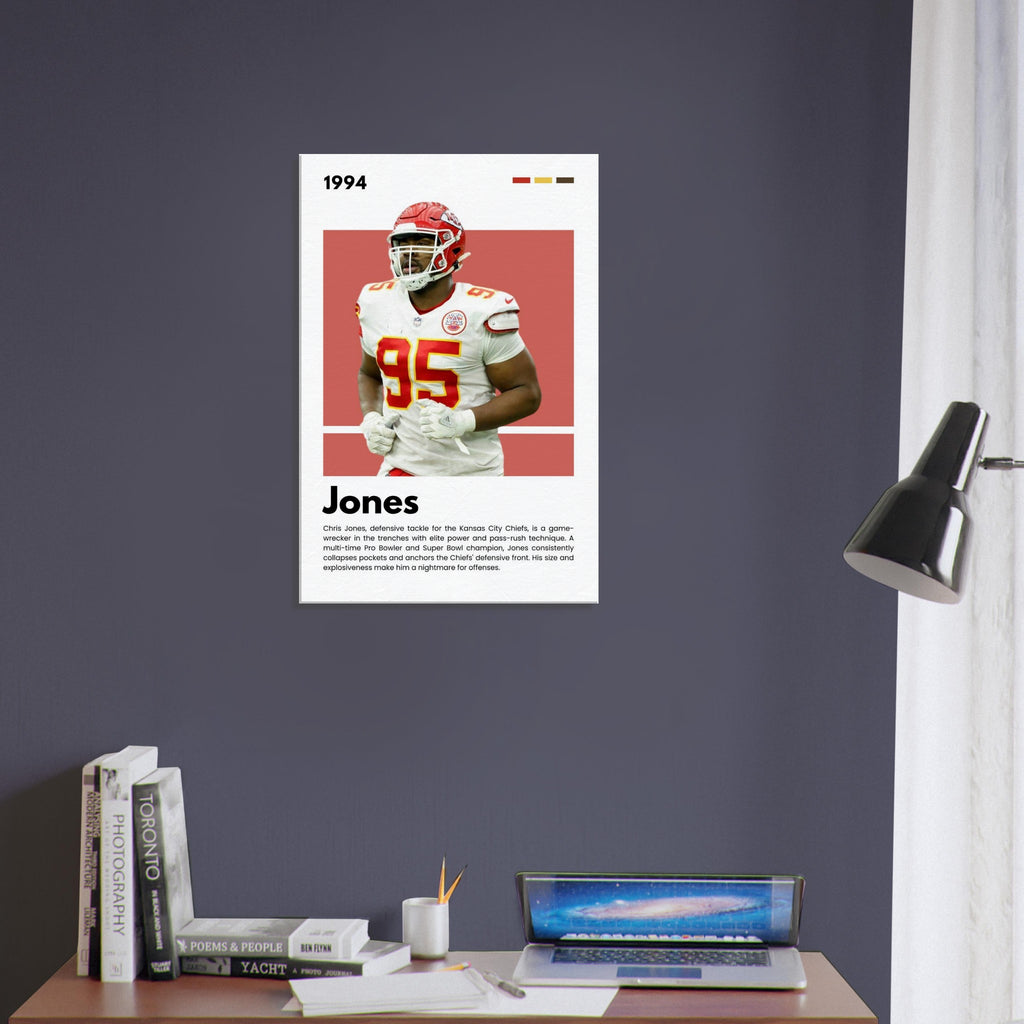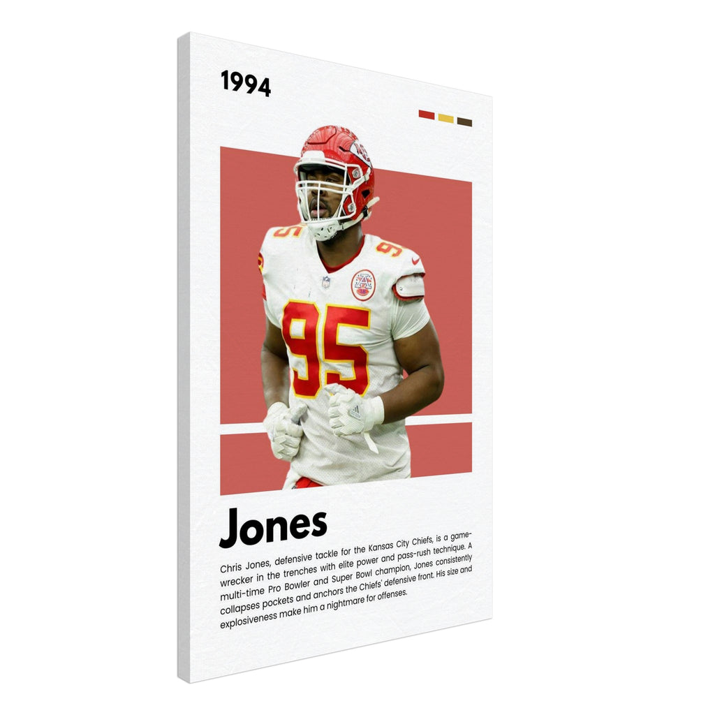 Celebrate the formidable power of Chris Jones, the game-wrecker defensive tackle for the Kansas City Chiefs, with this captivating wall art. Featuring Jones in his iconic Chiefs kit, this canvas captures his dynamic presence on the field, bringing the intensity and spirit of game day right into your home. It’s the perfect centerpiece for any true Chiefs enthusiast or football fan looking to showcase their passion.