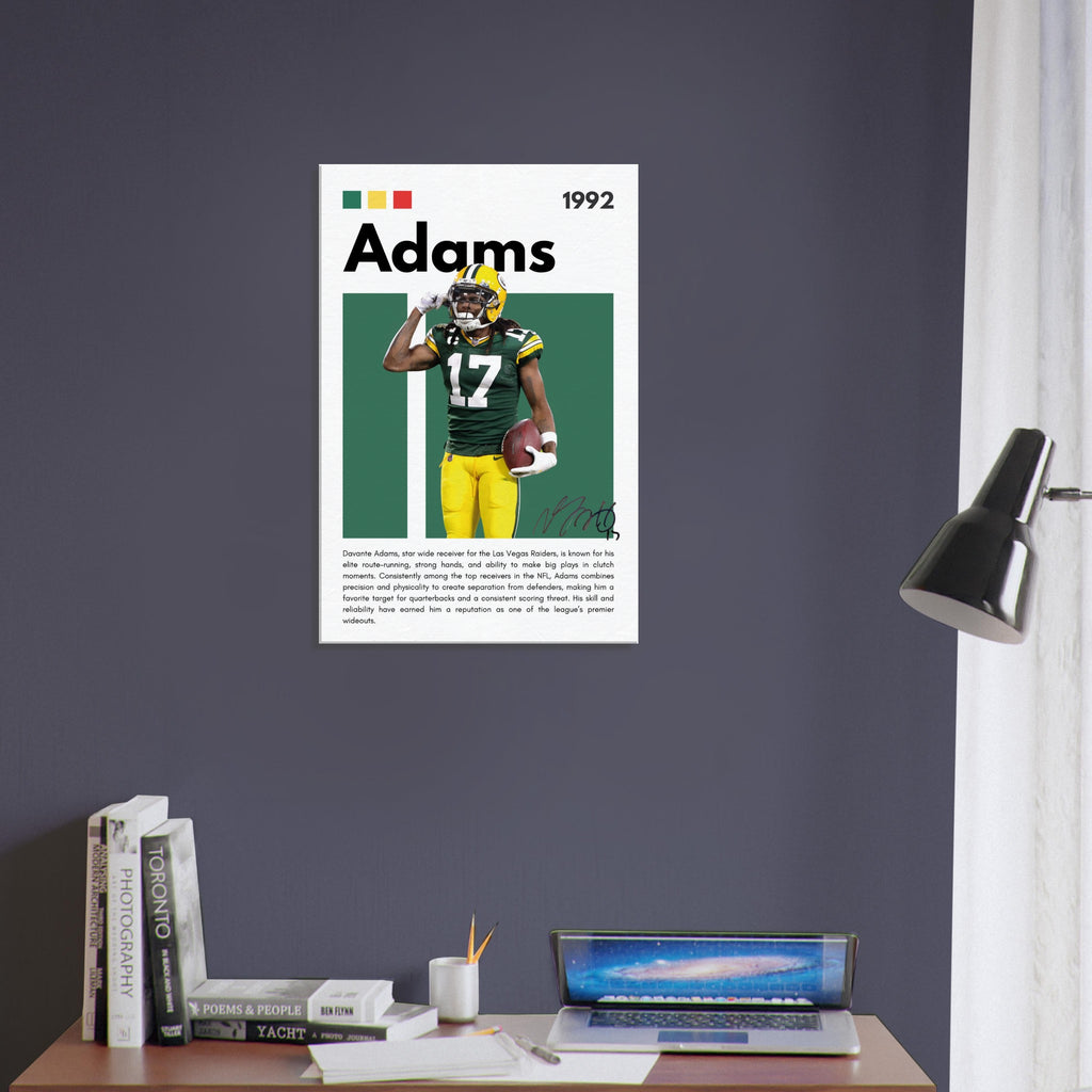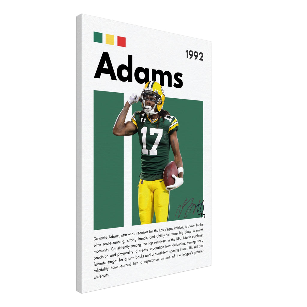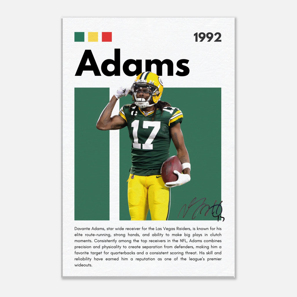 Celebrate one of football’s most electrifying wide receivers with this striking Davante Adams wall art, featuring him in his iconic Las Vegas Raiders kit with number 17. Designed with vibrant team colors and dynamic detail, this tribute canvas adds energy and inspiration to any room — the perfect centerpiece for true Adams fans and sports lovers alike.