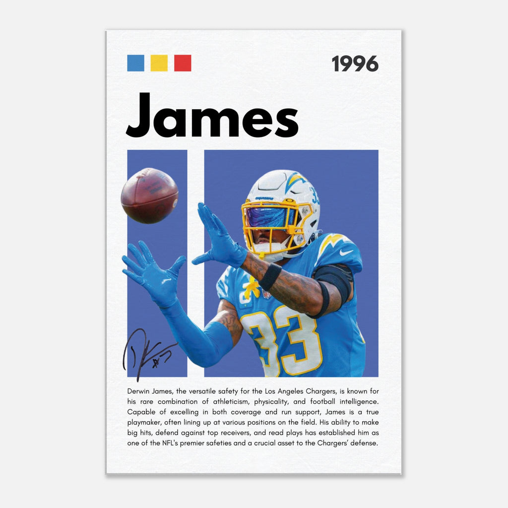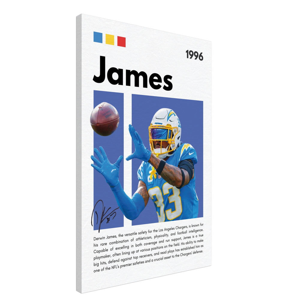 Honor the versatility and talent of Derwin James with this dynamic wall art, showcasing him in his iconic Los Angeles Chargers uniform. With a bold aesthetic and vibrant colors, this tribute canvas perfectly captures James’s commanding presence on the field, making it an essential piece for Chargers fans and football enthusiasts.