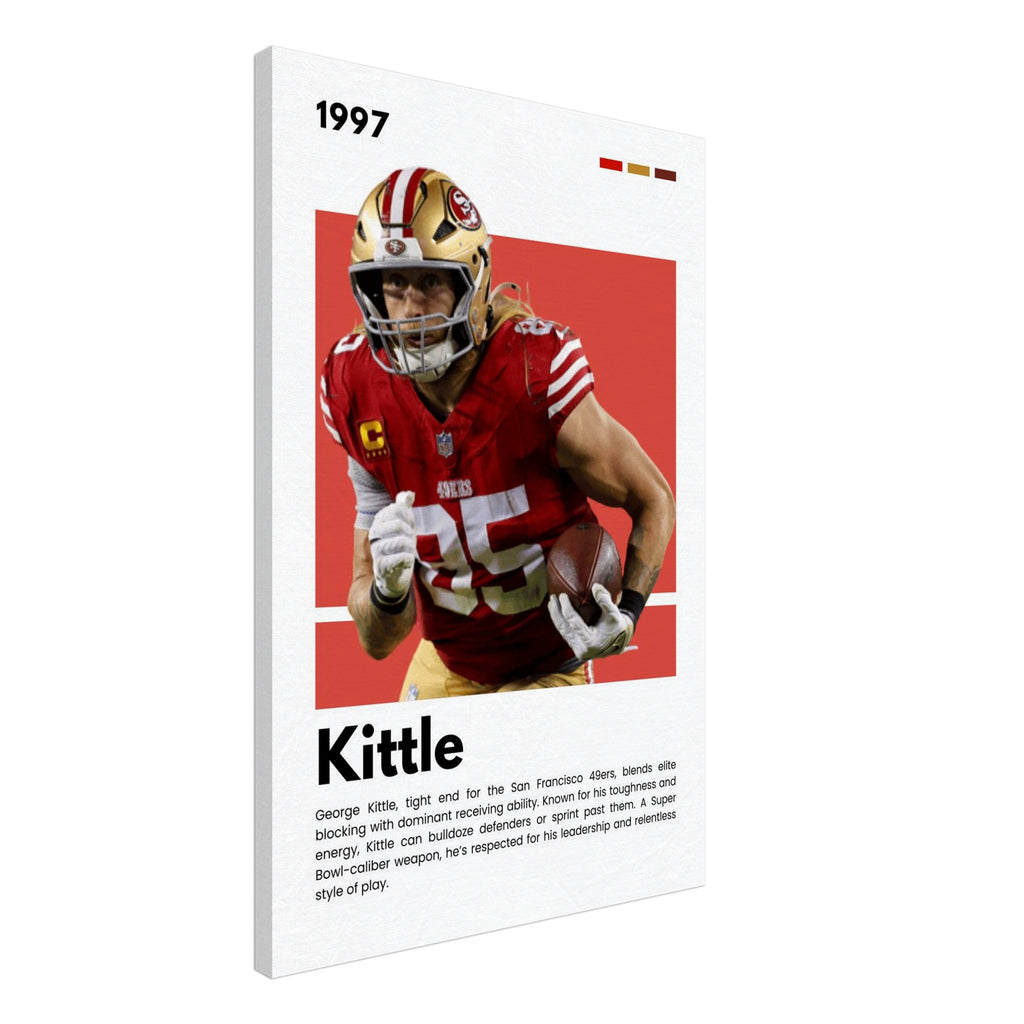 Capture the unyielding spirit of George Kittle, the legendary tight end for the San Francisco 49ers, with this electrifying wall art. Featuring Kittle in his iconic 49ers uniform, this dynamic canvas brings the intensity and passion of NFL football right into your space. With bold colors that pop and a powerful depiction of Kittle's commanding presence, this piece is a must-have for every Niner faithful and football enthusiast looking to add a touch of gridiron glory to their home or office.