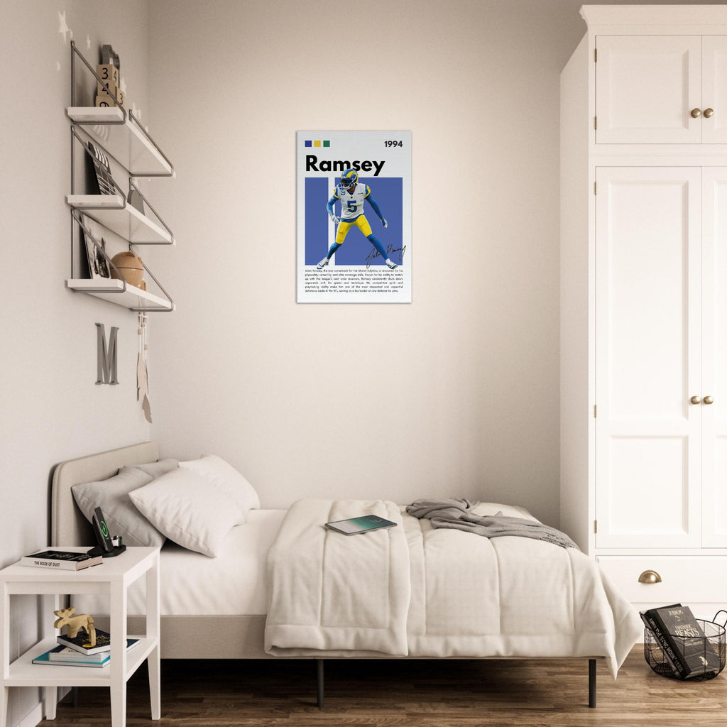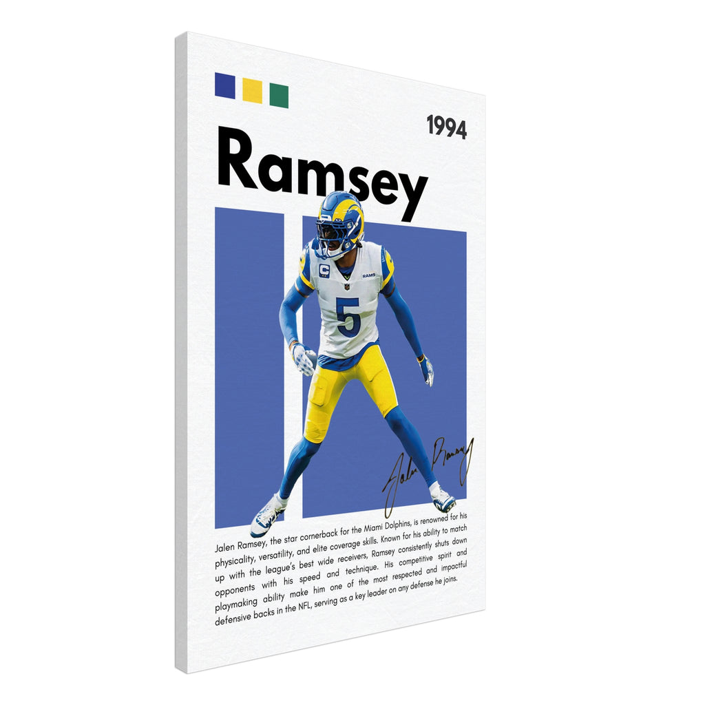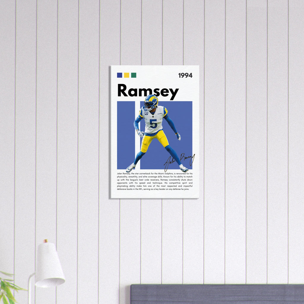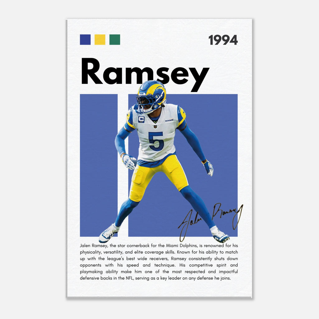 ✅ Jalen Ramsey Tribute – Featuring Ramsey in his iconic blue and yellow Los Angeles Rams uniform with a facsimile signature print