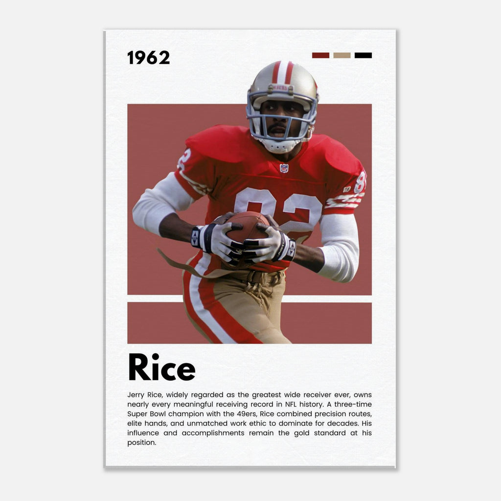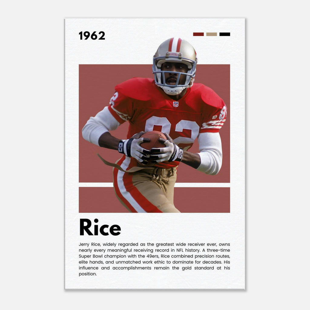 ✔️ A motivational piece that captures Jerry Rice's power, drive, and legendary career