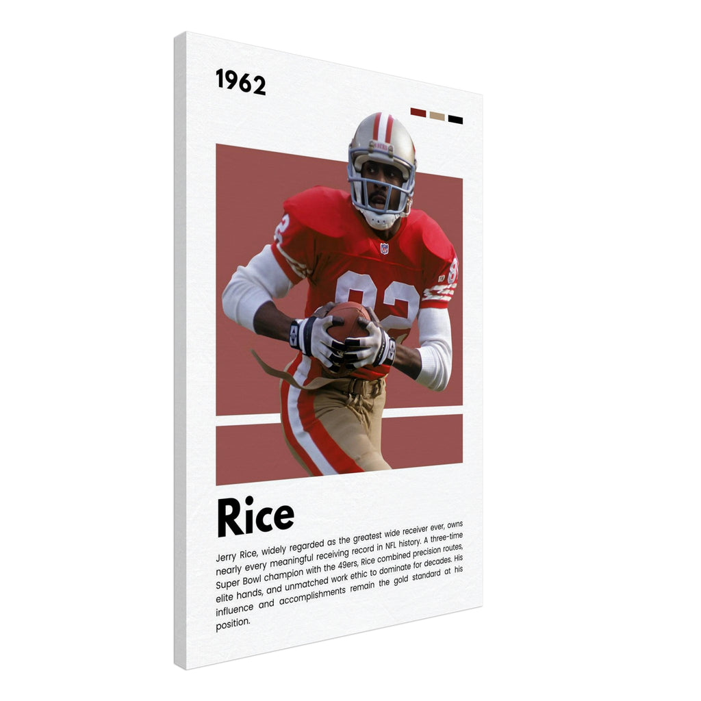 Capture the electrifying energy of a football icon with this stunning Jerry Rice wall art, featuring the legendary wide receiver in his classic uniform. Designed with bold colors and dynamic detail, this tribute canvas adds energy and inspiration to any room — the perfect centerpiece for true NFL fans and sports lovers alike.