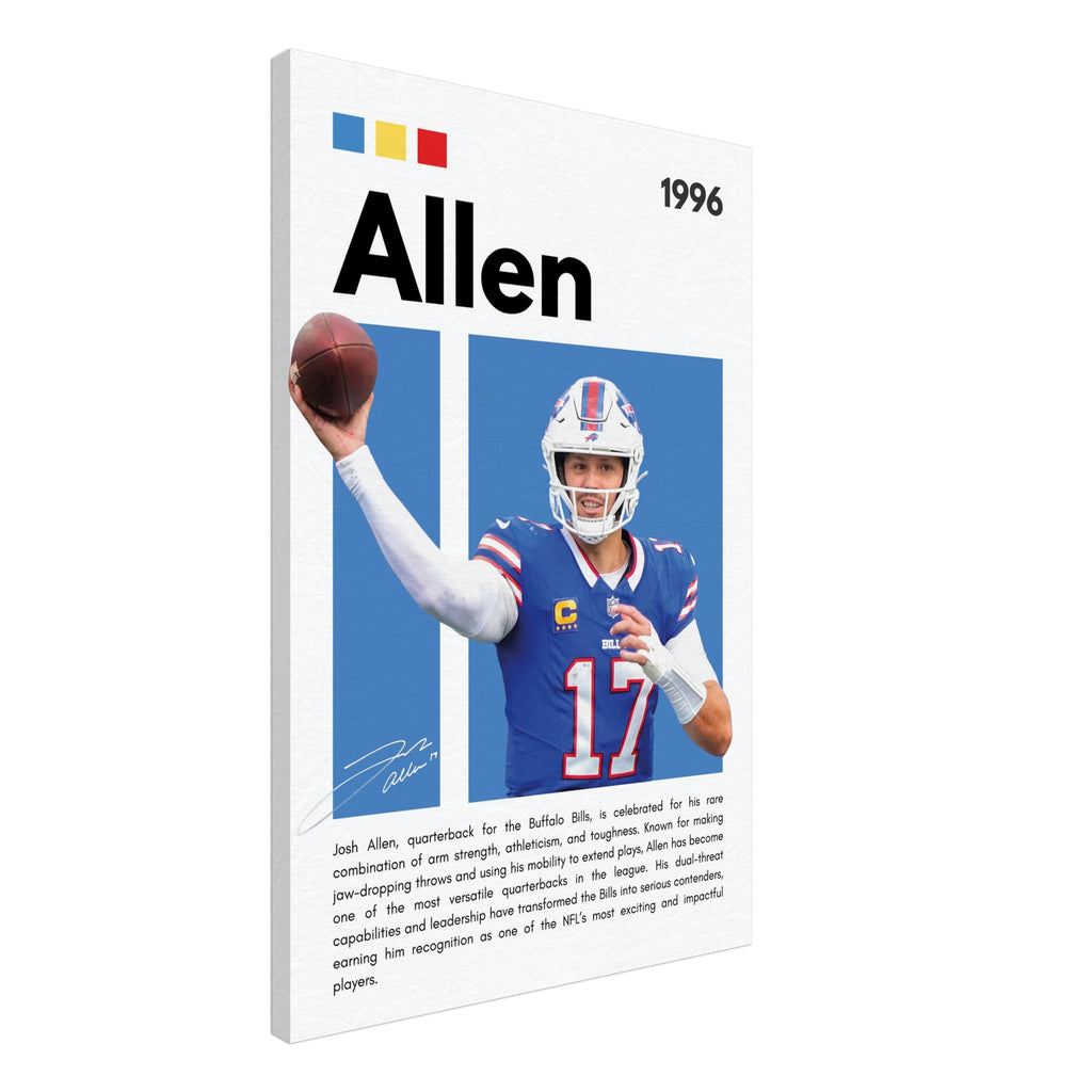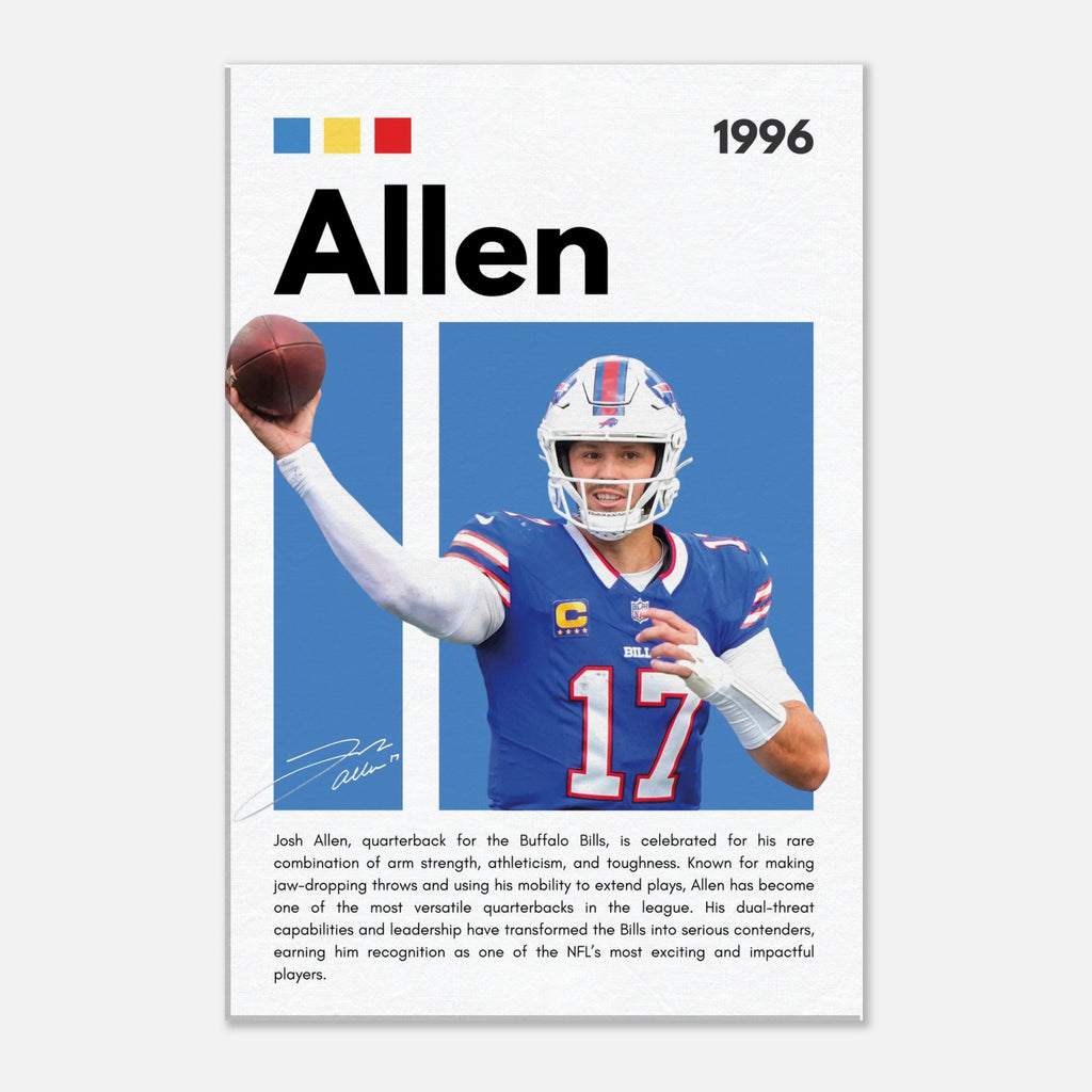 ✅ Josh Allen Tribute – Featuring the Buffalo Bills' star quarterback in his team kit and facsimile signature print