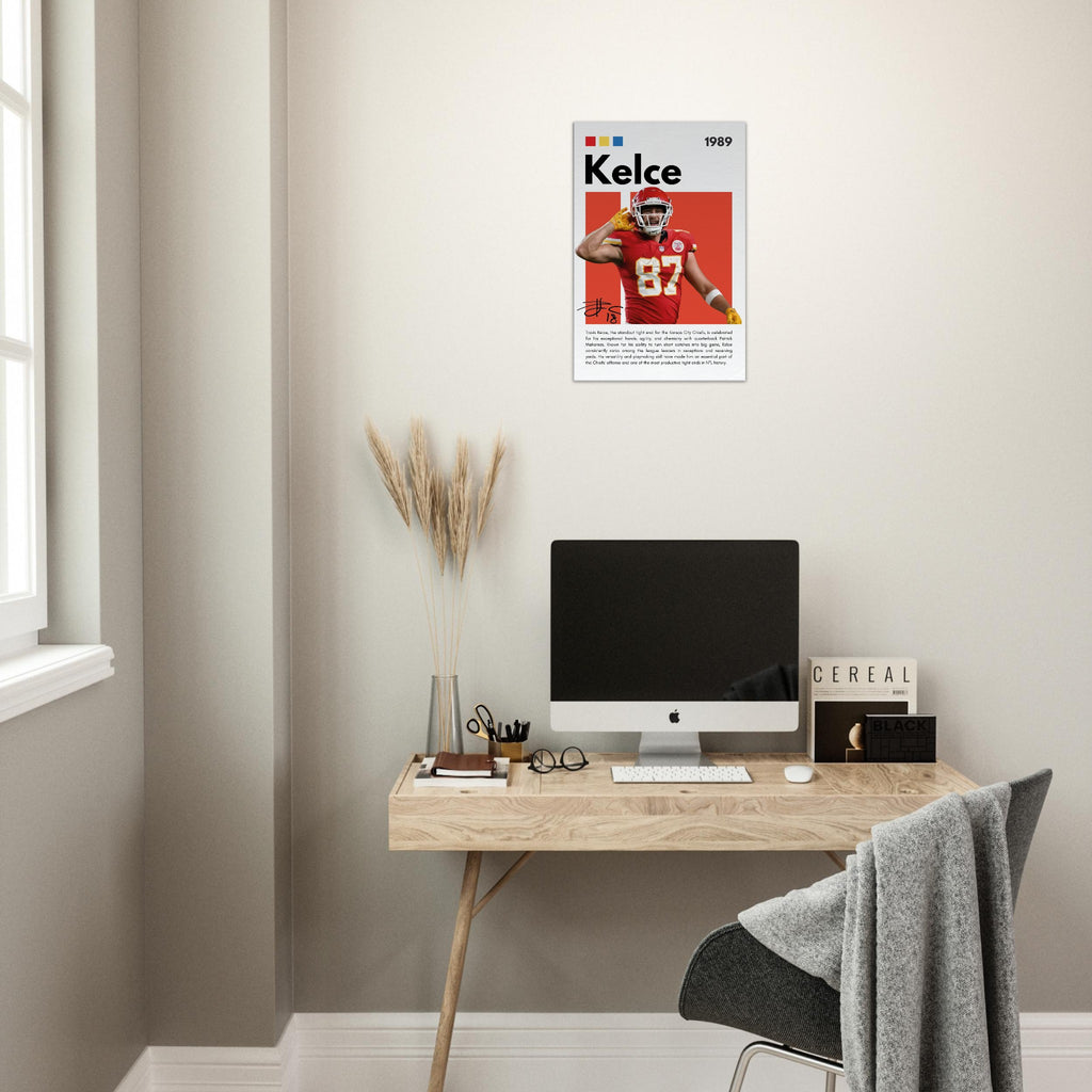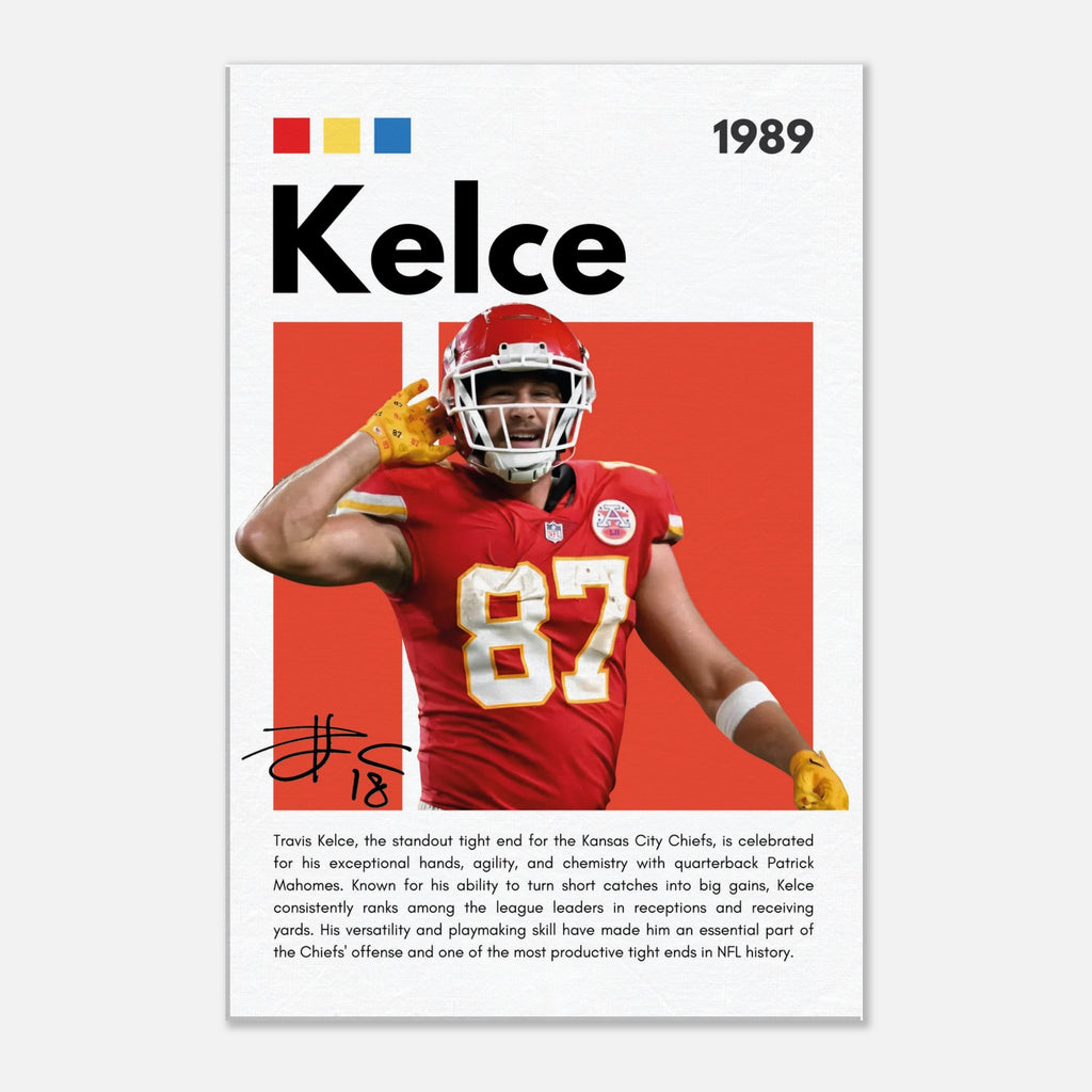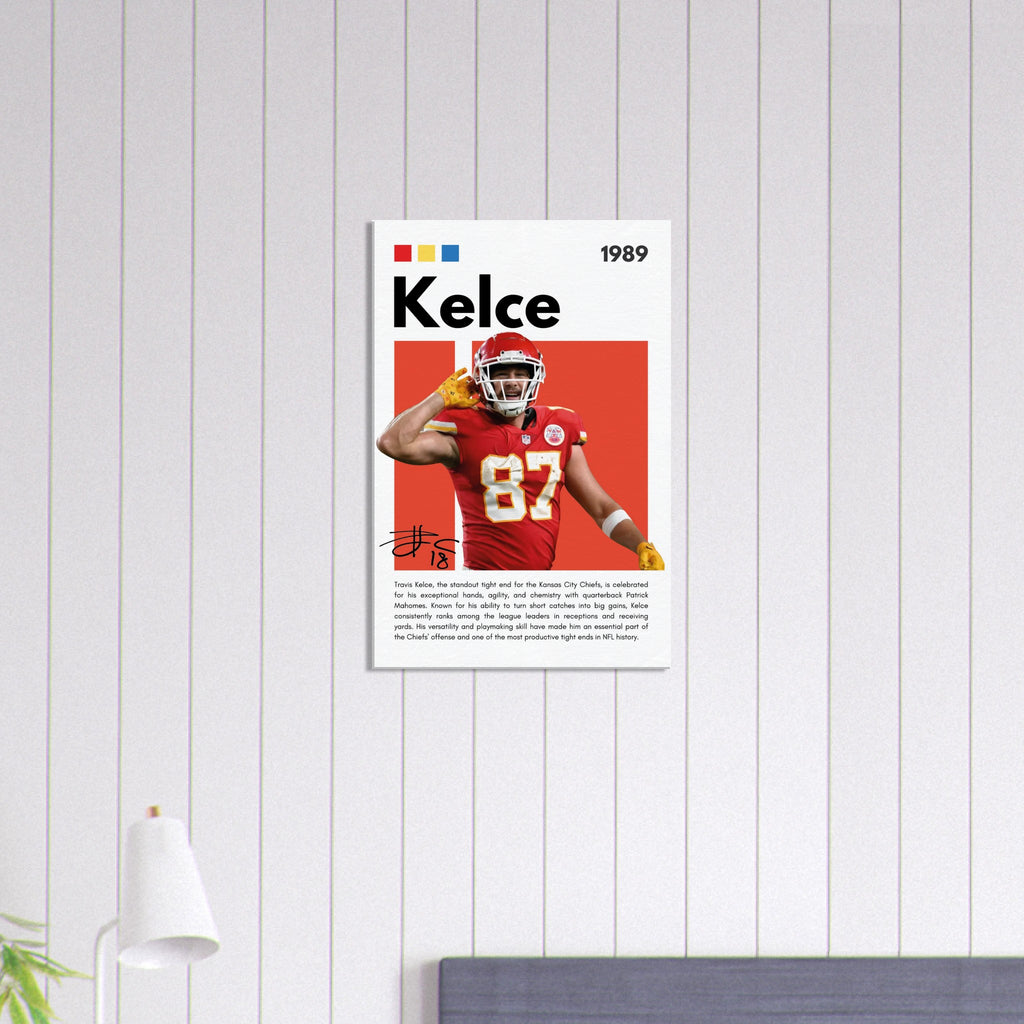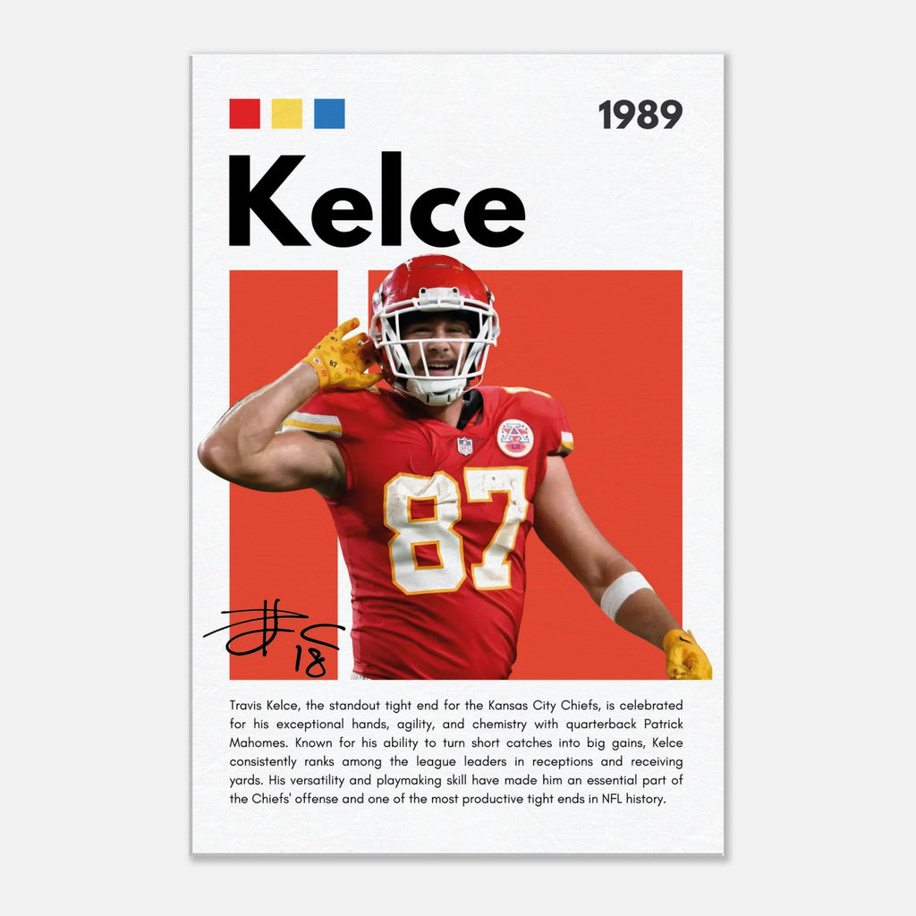 ✅ Travis Kelce Tribute – Featuring Kelce in his Kansas City Chiefs national kit with number 87 and facsimile signature print