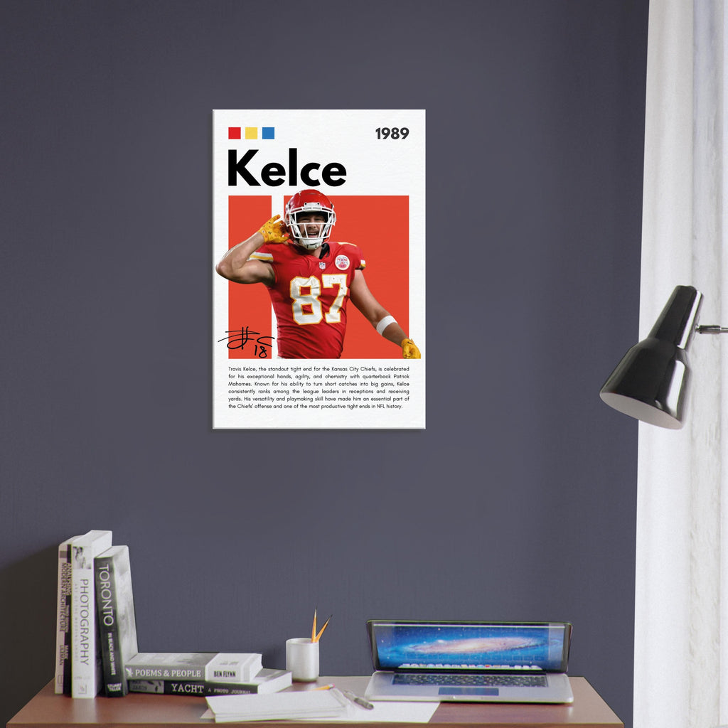 Celebrate football’s standout tight end with this dynamic Travis Kelce wall art, featuring him in his iconic Kansas City Chiefs kit with number 87. Designed with bold reds and vibrant details, this tribute canvas captures Kelce's energy and leadership, adding a motivational touch to any room. It's the perfect centerpiece for true Chiefs fans and sports lovers alike.