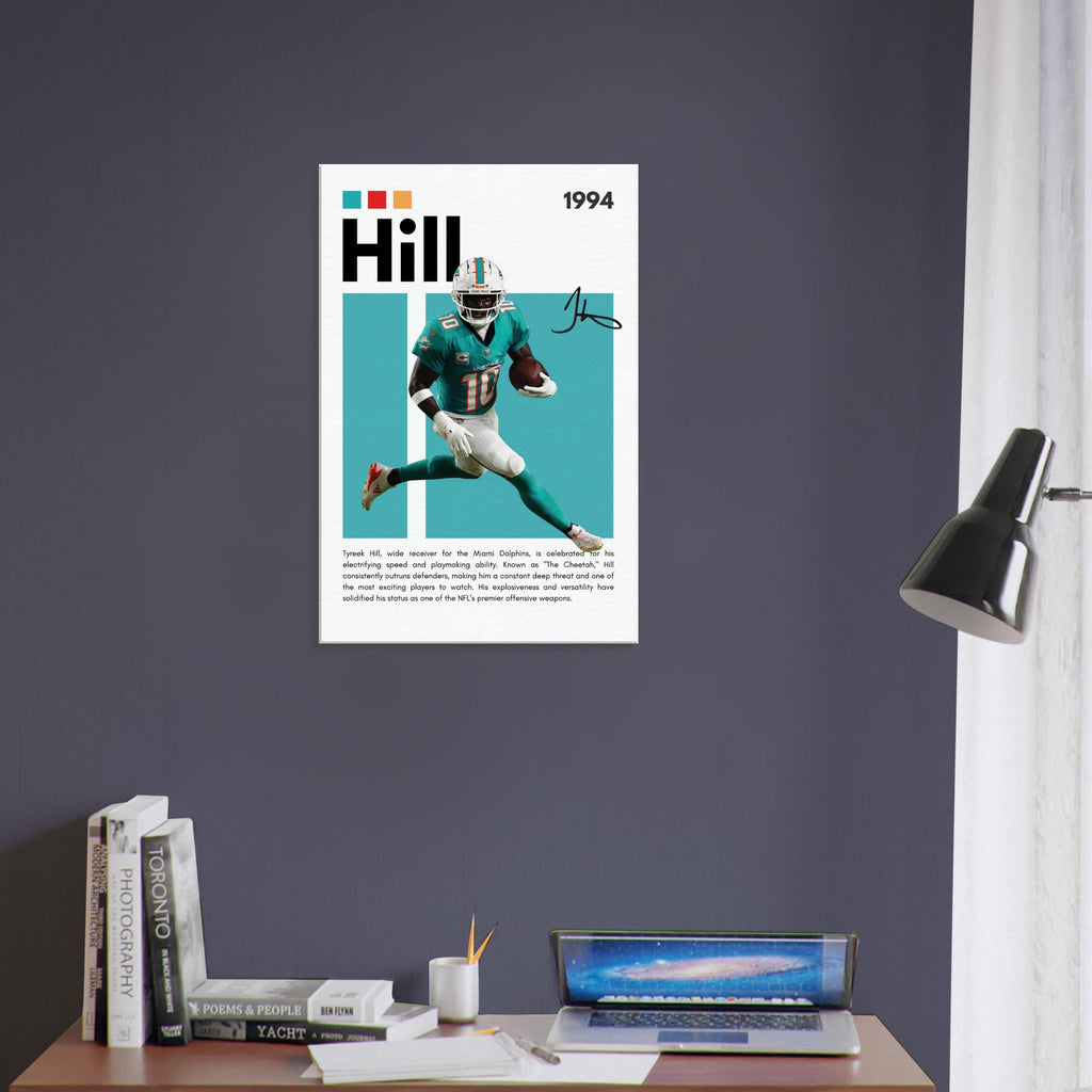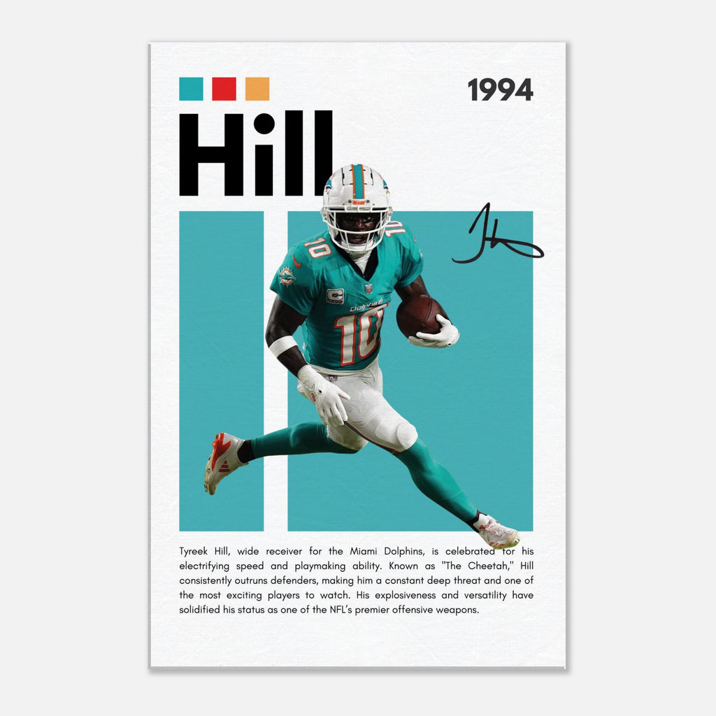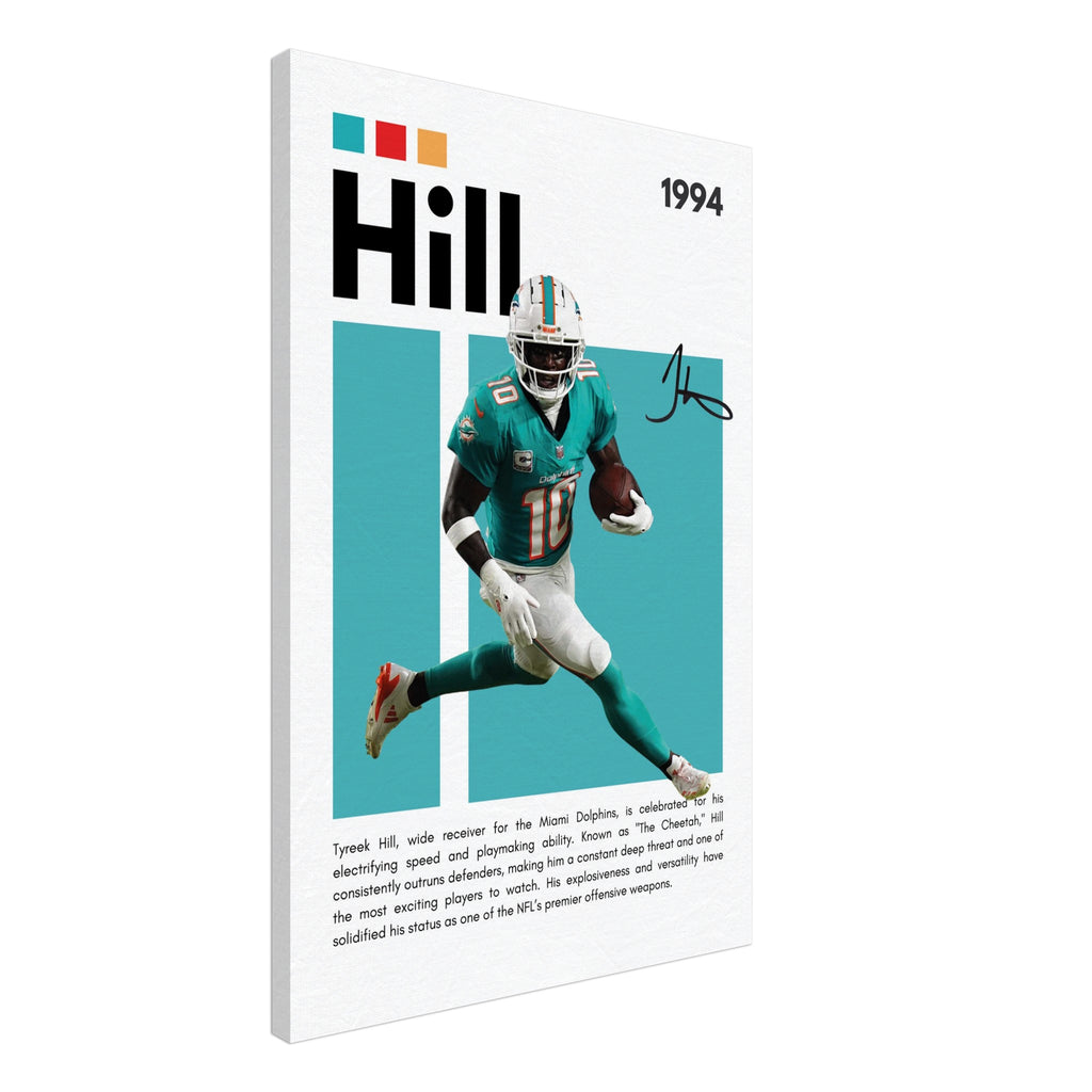 Celebrate the electrifying speed and playmaking ability of Tyreek Hill with this striking wall art. Featuring "The Cheetah" in his iconic Miami Dolphins kit, this vibrant canvas captures his dynamic energy and undisputed status as one of the NFL's most exciting players. It's the perfect centerpiece for any Dolphins fanatic, sports enthusiast, or anyone who appreciates the sheer power and agility of a true football legend.