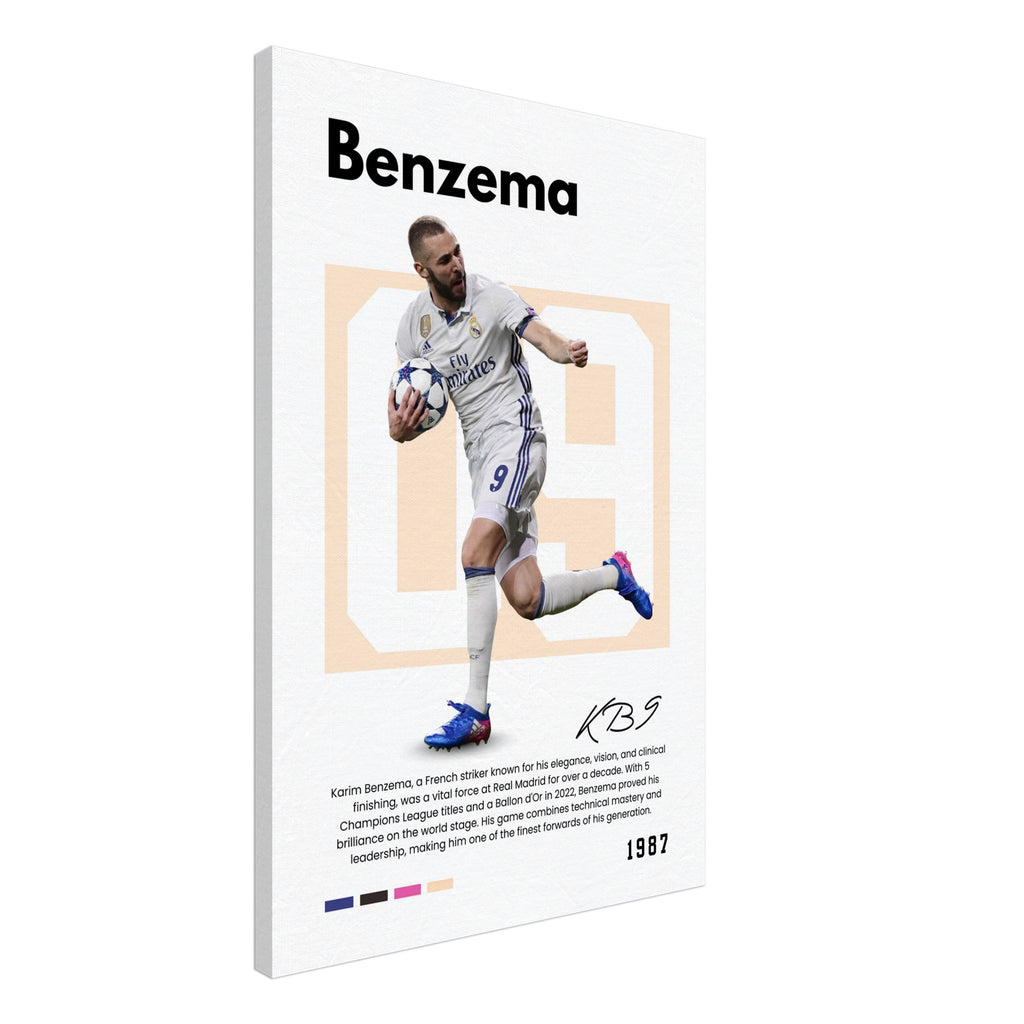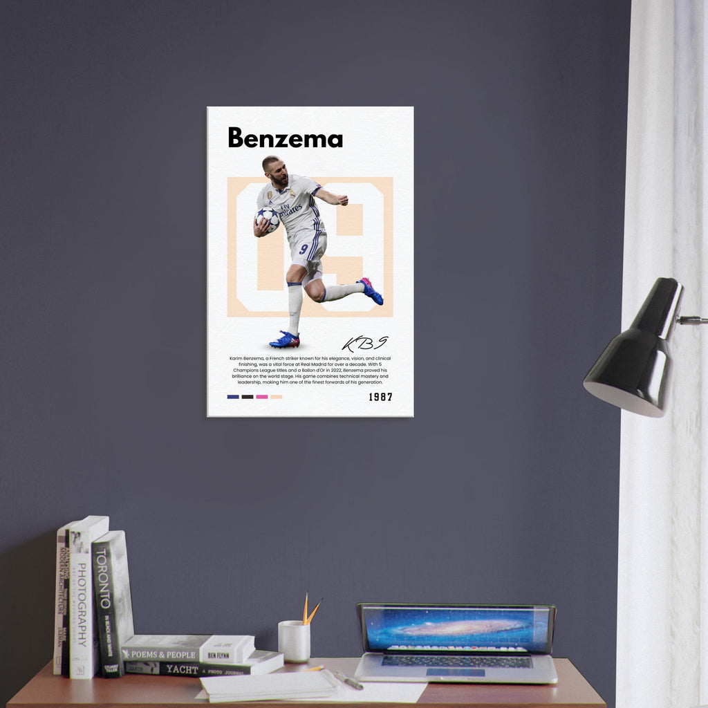 Capture the electrifying presence of Karim Benzema with this dynamic wall art, showcasing him in his iconic Real Madrid kit with his legendary number 9. Designed with a striking, minimalist aesthetic and exquisite detail, this tribute canvas perfectly encapsulates the power and precision of Benzema’s game. It's the ultimate centerpiece for true Real Madrid fans and football aficionados, bringing a touch of greatness and inspiration to any space.