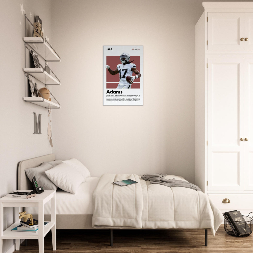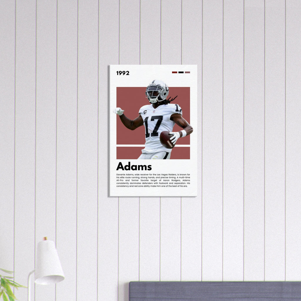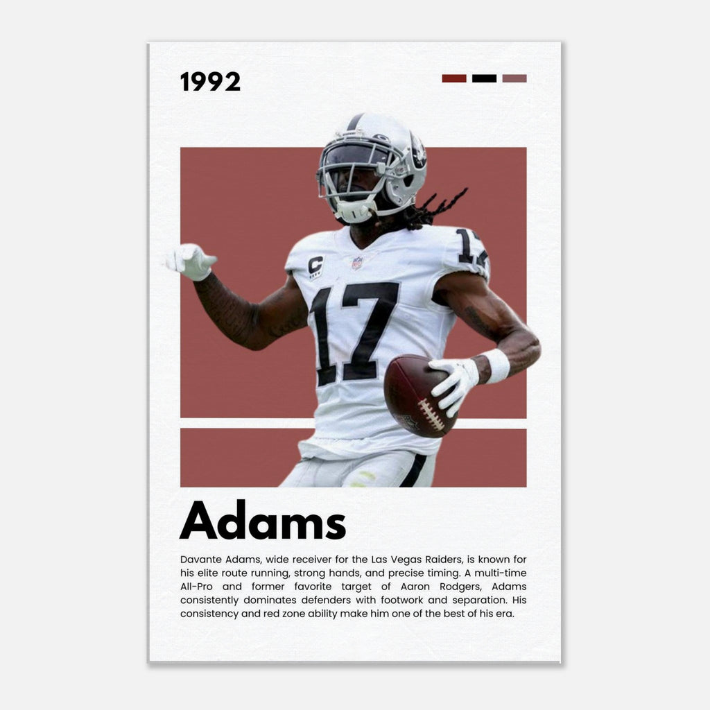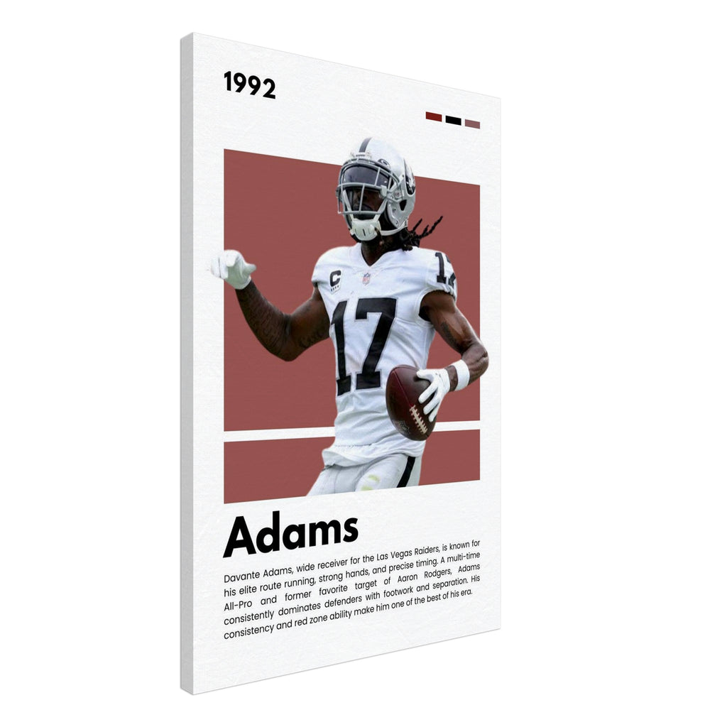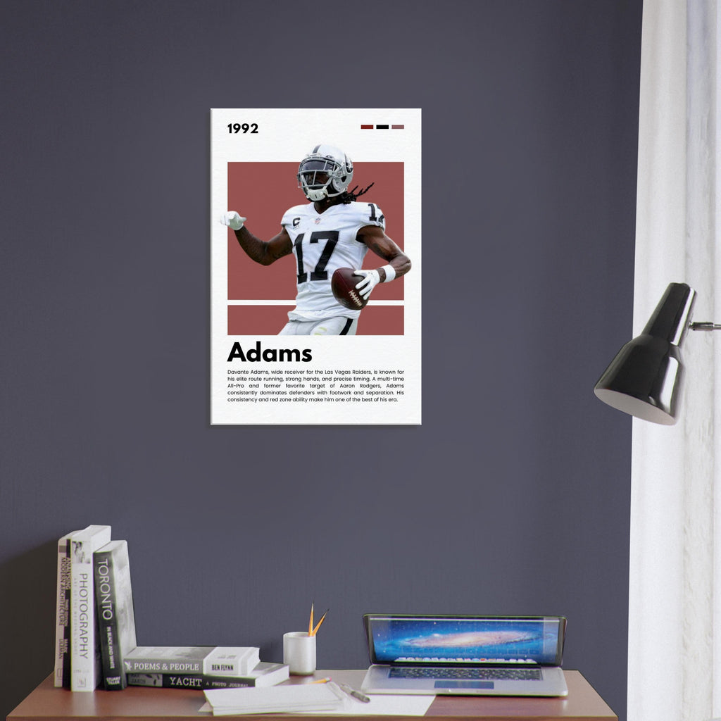 Celebrate one of the NFL’s most electrifying wide receivers with this stunning Davante Adams wall art, showcasing him in his iconic Las Vegas Raiders uniform. Designed with bold contrast and dynamic energy, this premium canvas captures Adams’ precision, power, and elite skill — a must-have centerpiece for any Raiders fan or football lover.
