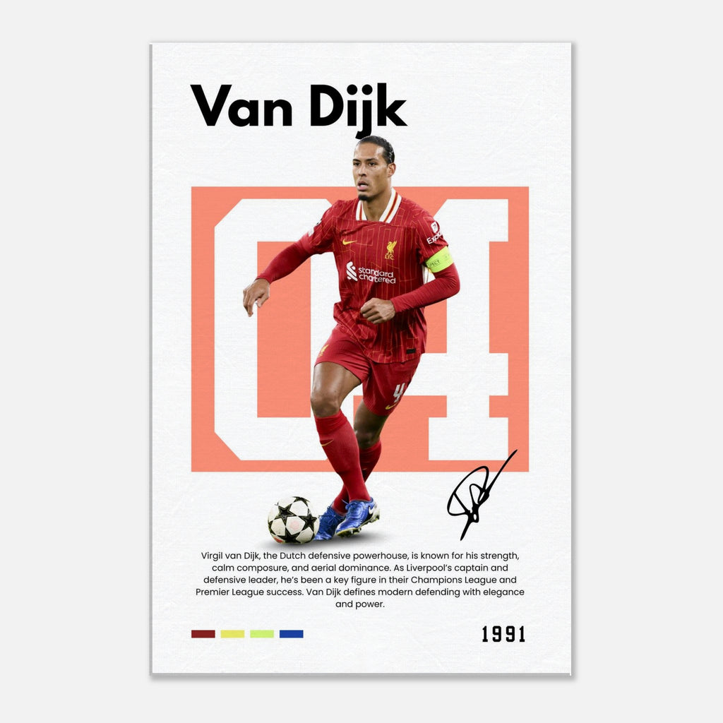 ✔️ A motivational piece that captures Van Dijk’s power, composure, and legendary career