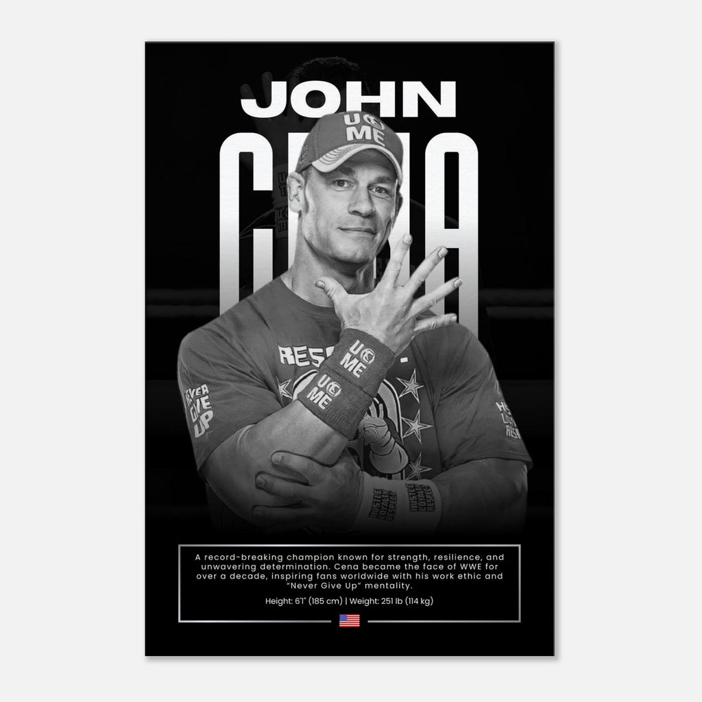 ✅ John Cena Tribute – Featuring the WWE icon in a powerful black and white design with a facsimile signature print