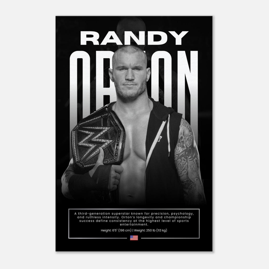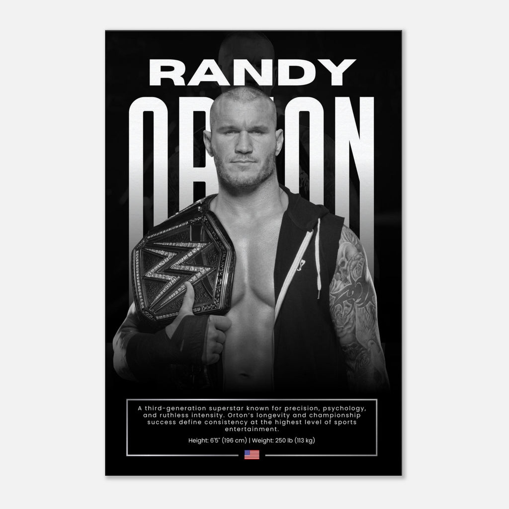 Unleash the Apex Predator into your space with this captivating Randy Orton wall art, showcasing the legendary WWE Champion in a striking black and white portrait. This piece captures "The Viper's" intensity and championship legacy, making it an essential addition for any wrestling enthusiast or collector.