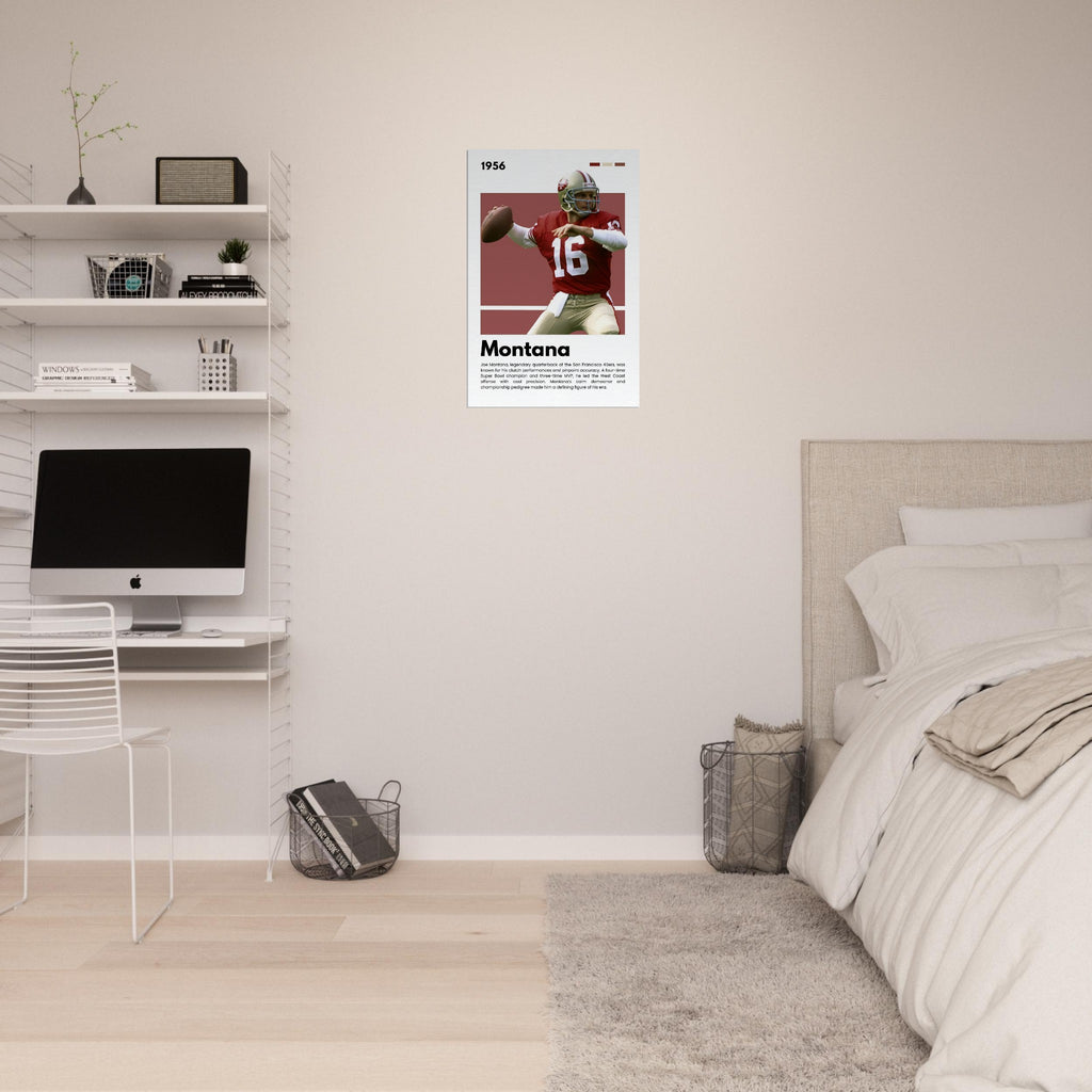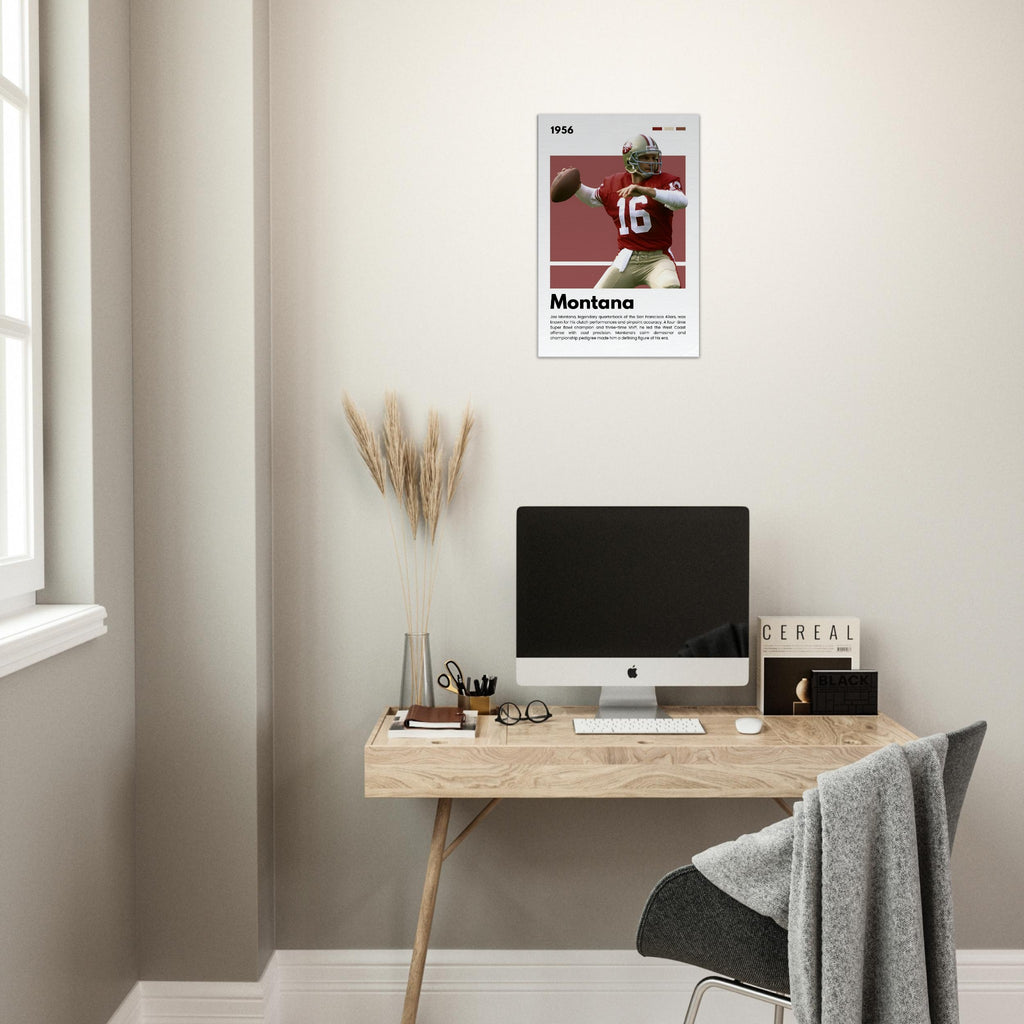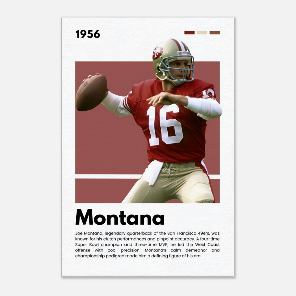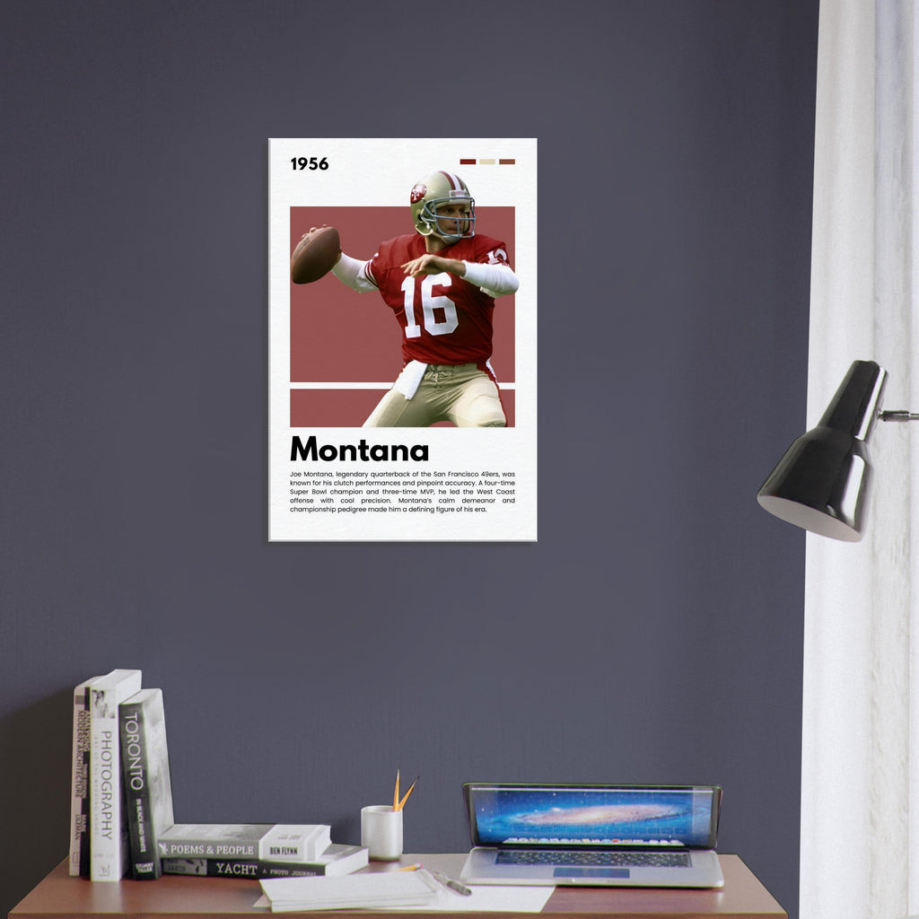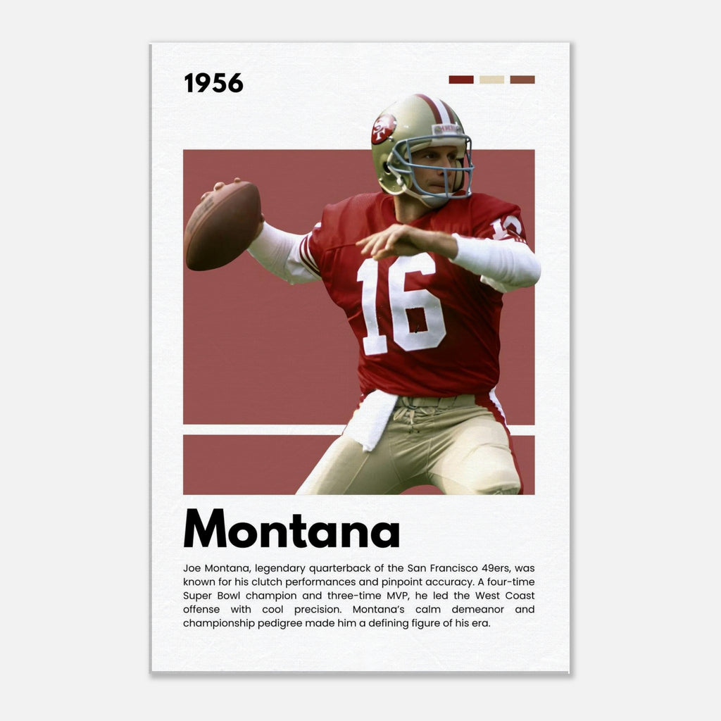 ✅ Joe Montana Tribute – Featuring the 49ers legend in his classic uniform with his iconic number 16 and a facsimile signature print
