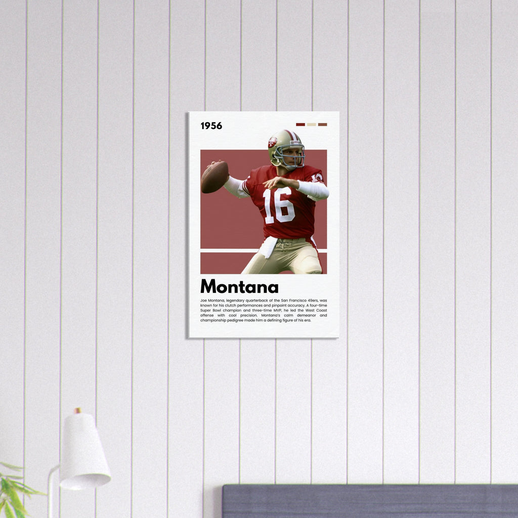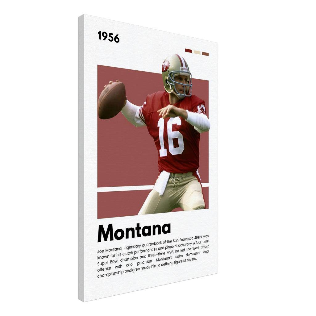 Celebrate football royalty with this striking Joe Montana wall art, capturing 'The Comeback Kid' in his iconic San Francisco 49ers uniform. Designed with a rich, retro color palette and dynamic detail, this tribute canvas adds a touch of legendary sports history to any room – a perfect centerpiece for true 49ers faithful, NFL enthusiasts, and fans of gridiron greatness.