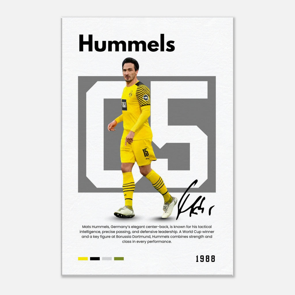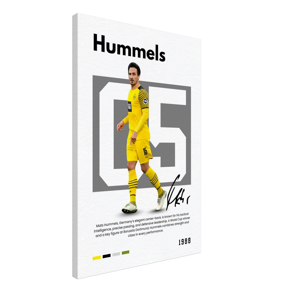 Celebrate the tactical brilliance of Mats Hummels with this striking wall art, capturing him in his iconic Borussia Dortmund kit (with the number 15) and displayed with number 5 from Bayern Munich. Designed with bold black and yellow colors and exquisite detail, this tribute canvas perfectly encapsulates the strength and elegance of Hummels' game. A perfect centerpiece for true Hummels fans and football lovers alike, it brings inspiration and greatness into any room.