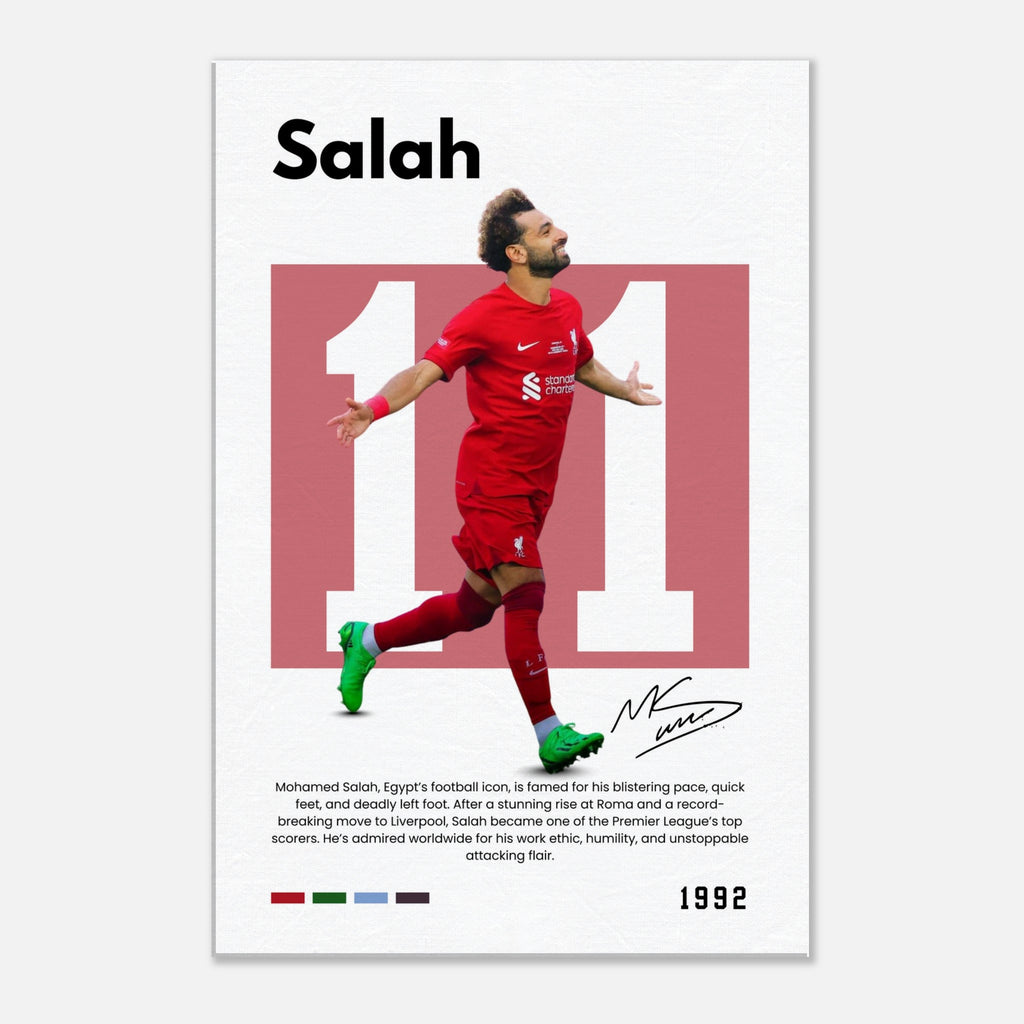 ✅ Mohamed Salah Tribute – Featuring Salah in Liverpool's kit with number 11 and facsimile signature print