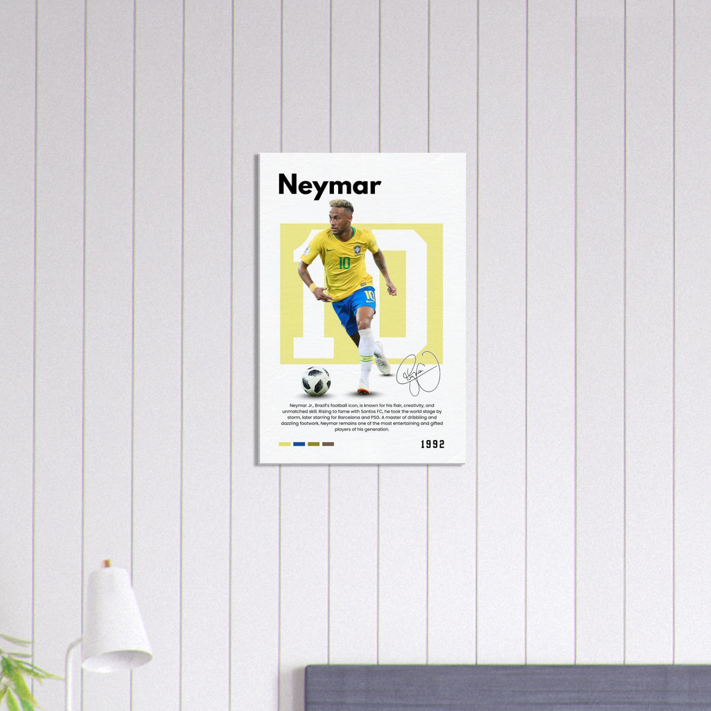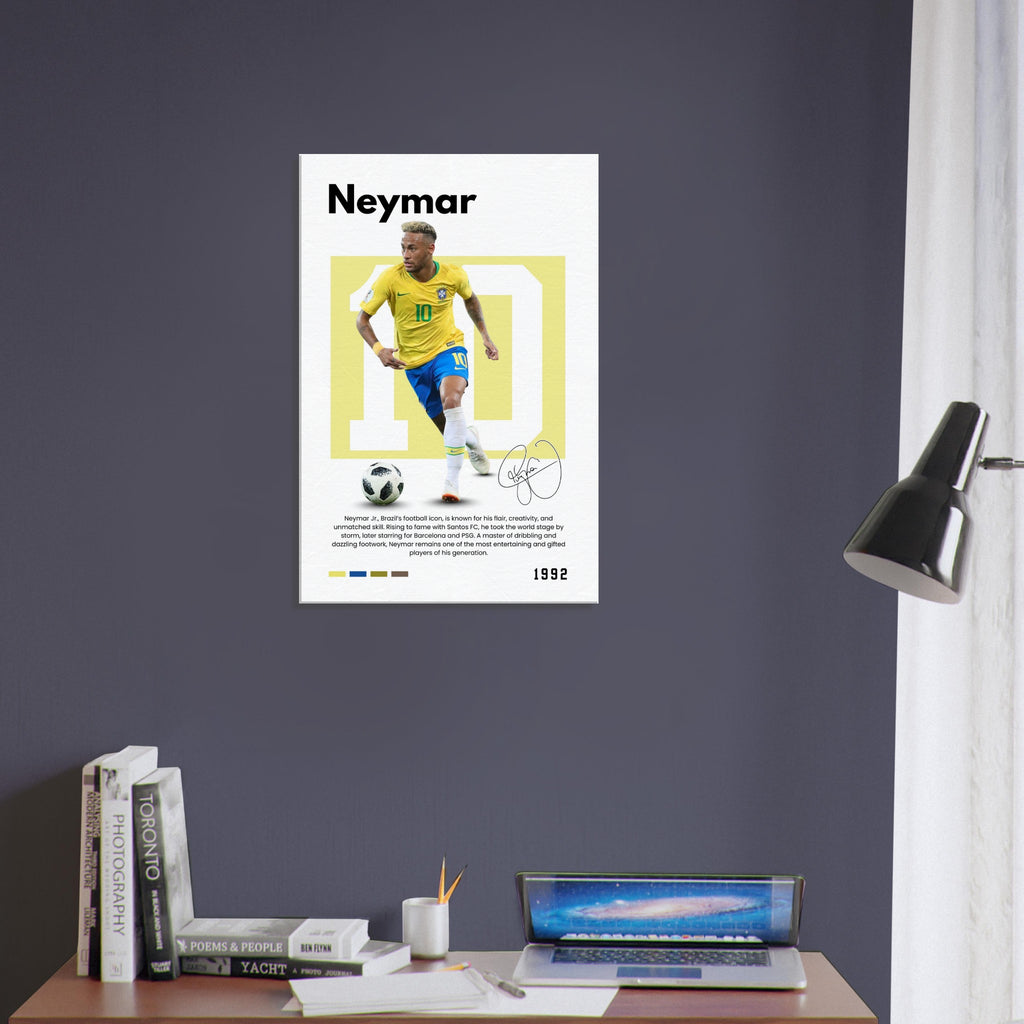 ✅ Neymar Jr. Tribute – Features Neymar in his vibrant Brazil kit with his iconic number 10 and facsimile signature print