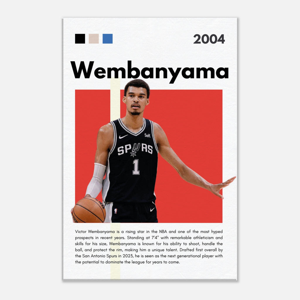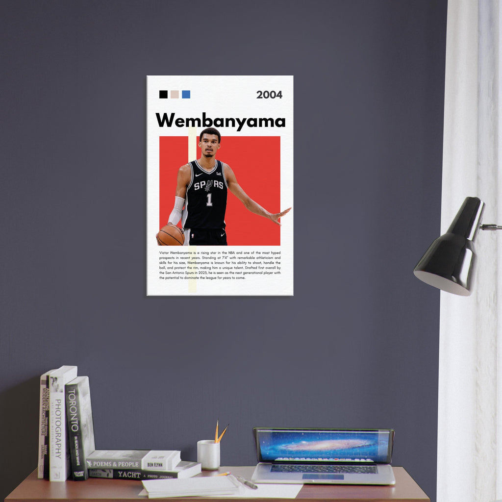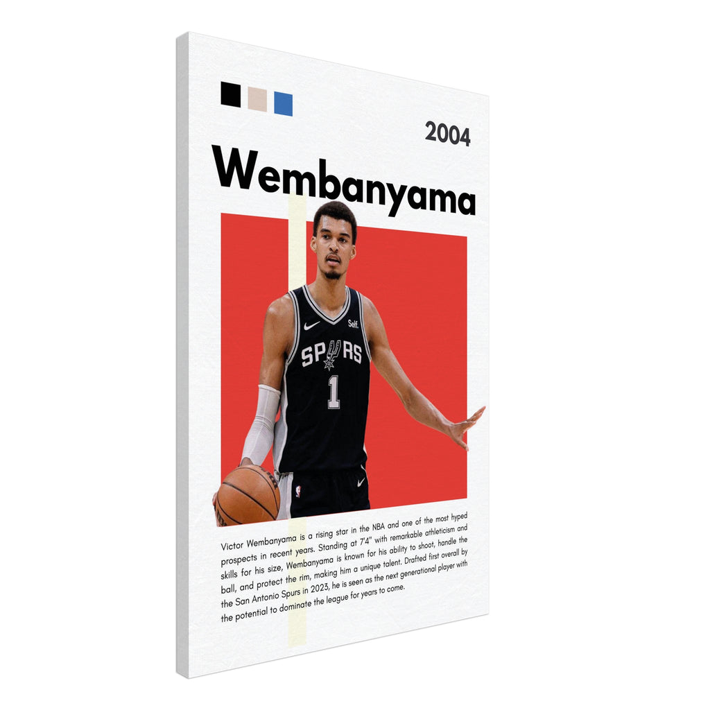 Celebrate one of basketball's most exciting rising stars with this stunning Victor Wembanyama wall art, featuring him in his iconic Spurs kit with number 1. Designed with bold colors and dynamic detail, this tribute canvas adds energy and inspiration to any room — the perfect centerpiece for true Wembanyama fans and sports lovers alike.