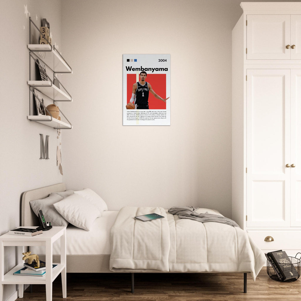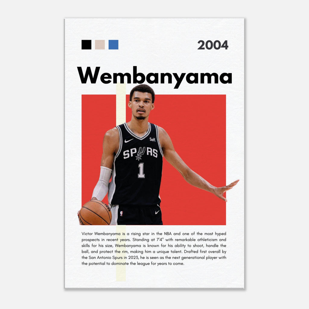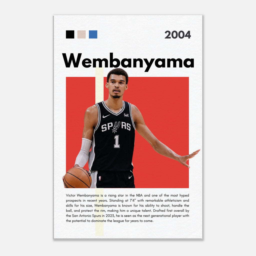 Celebrate one of basketball's most exciting rising stars with this stunning Victor Wembanyama wall art, featuring him in his iconic Spurs kit with number 1. Designed with bold colors and dynamic detail, this tribute canvas adds energy and inspiration to any room — the perfect centerpiece for true Wembanyama fans and sports lovers alike.